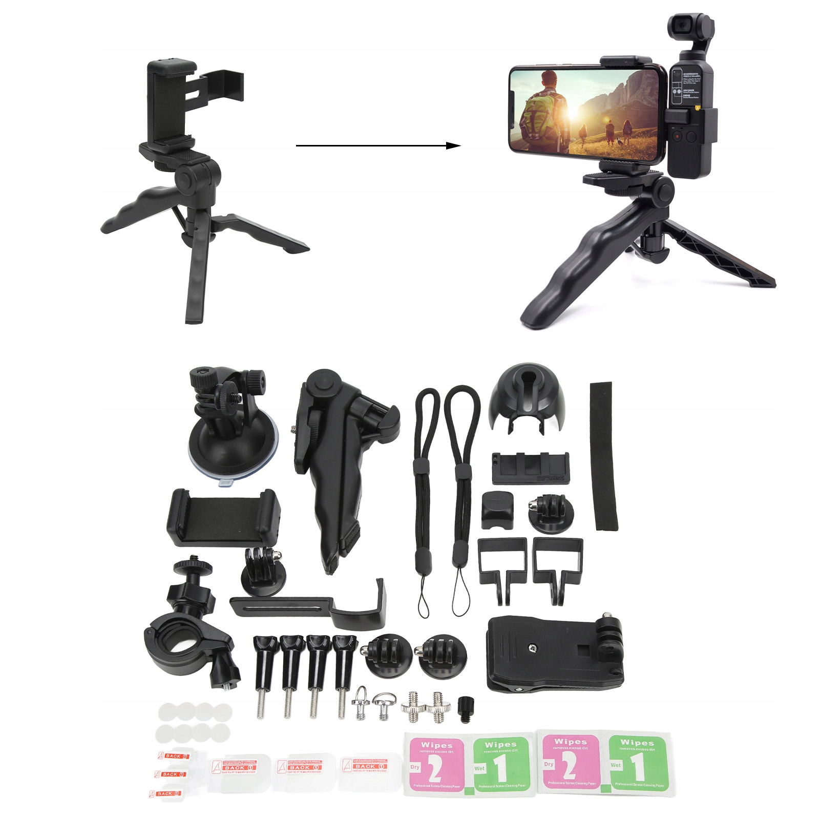 - 1 x затискач на мобільний телефон