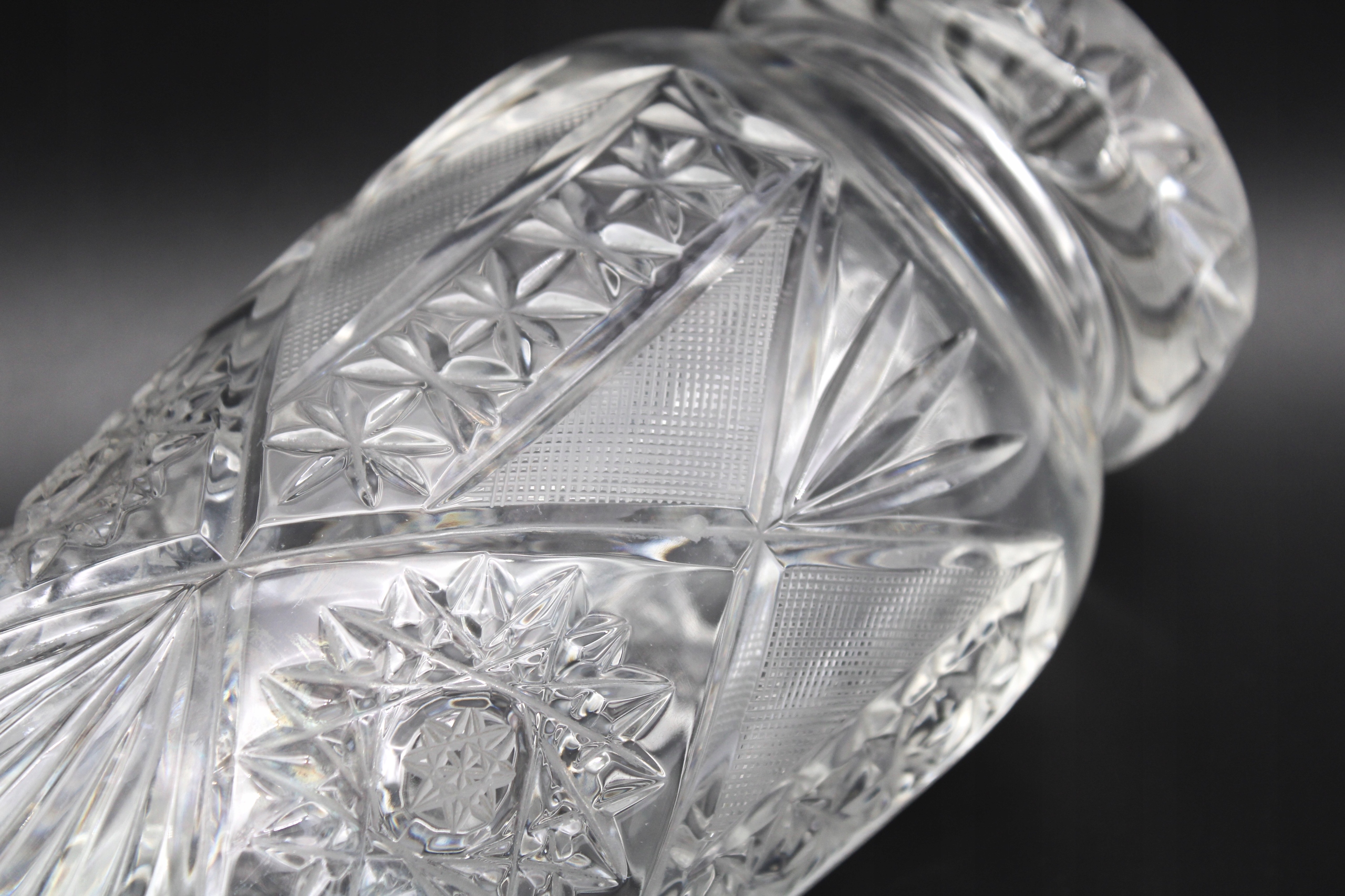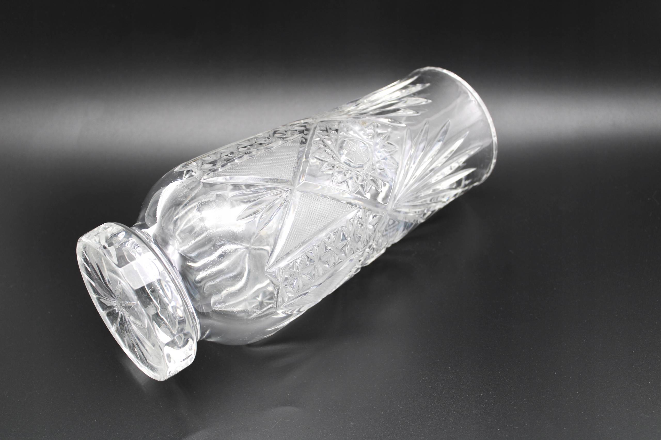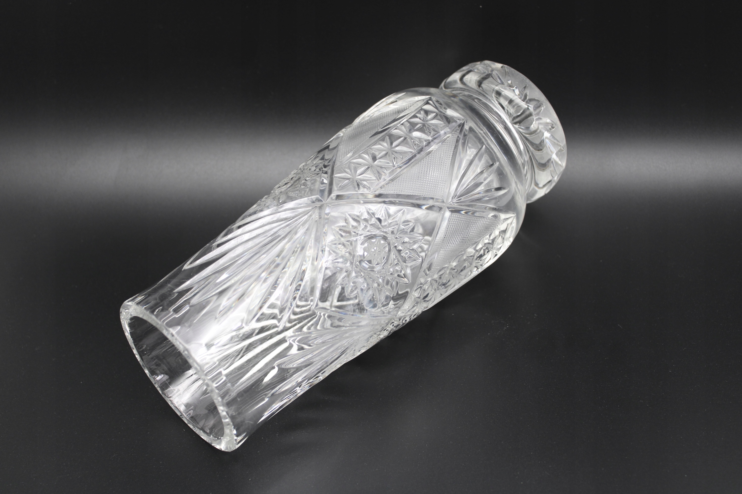 STARY CIĘŻKI WAZON KRYSZTAŁOWY RĘCZNIE SZLIFOWANY