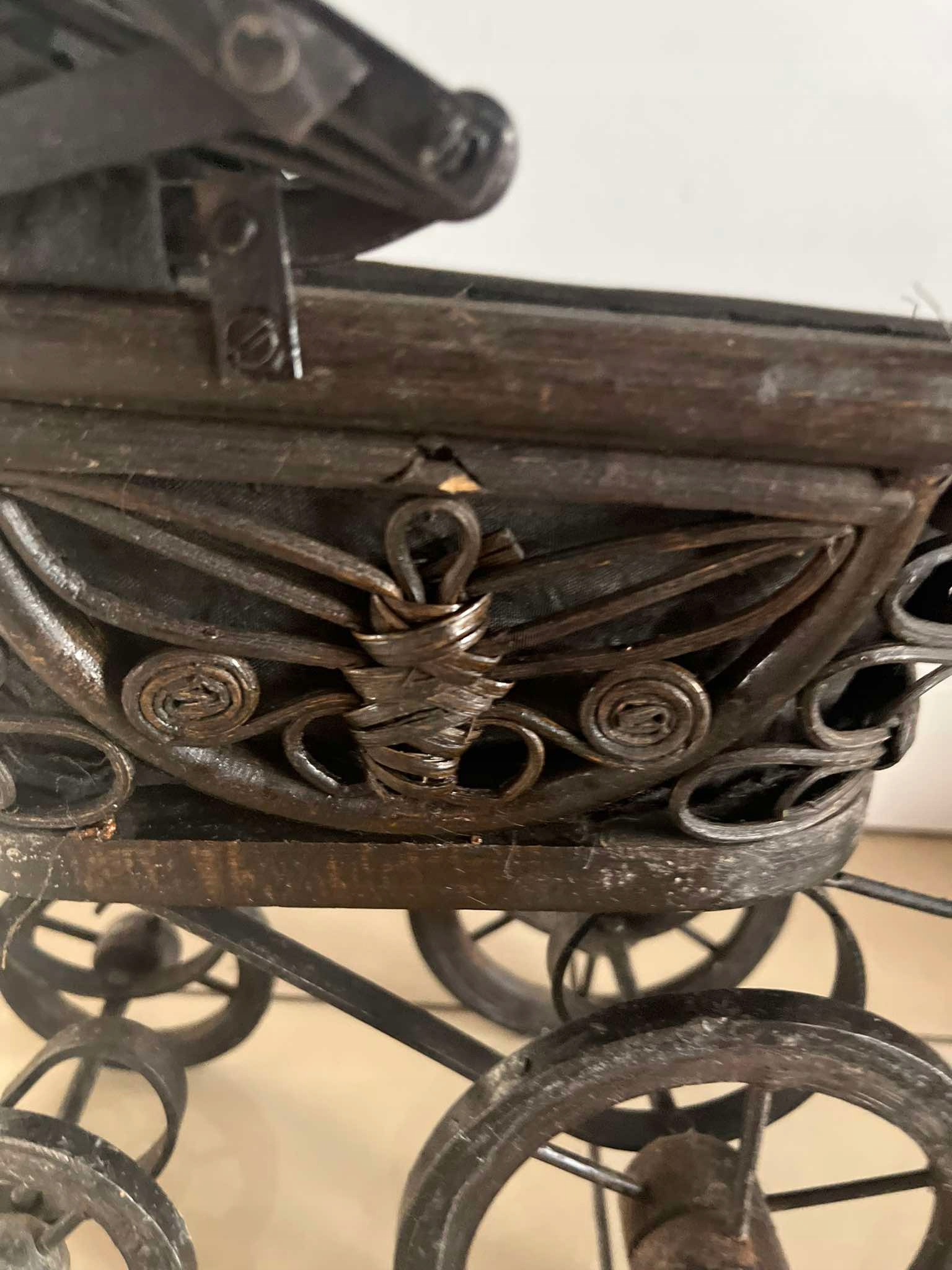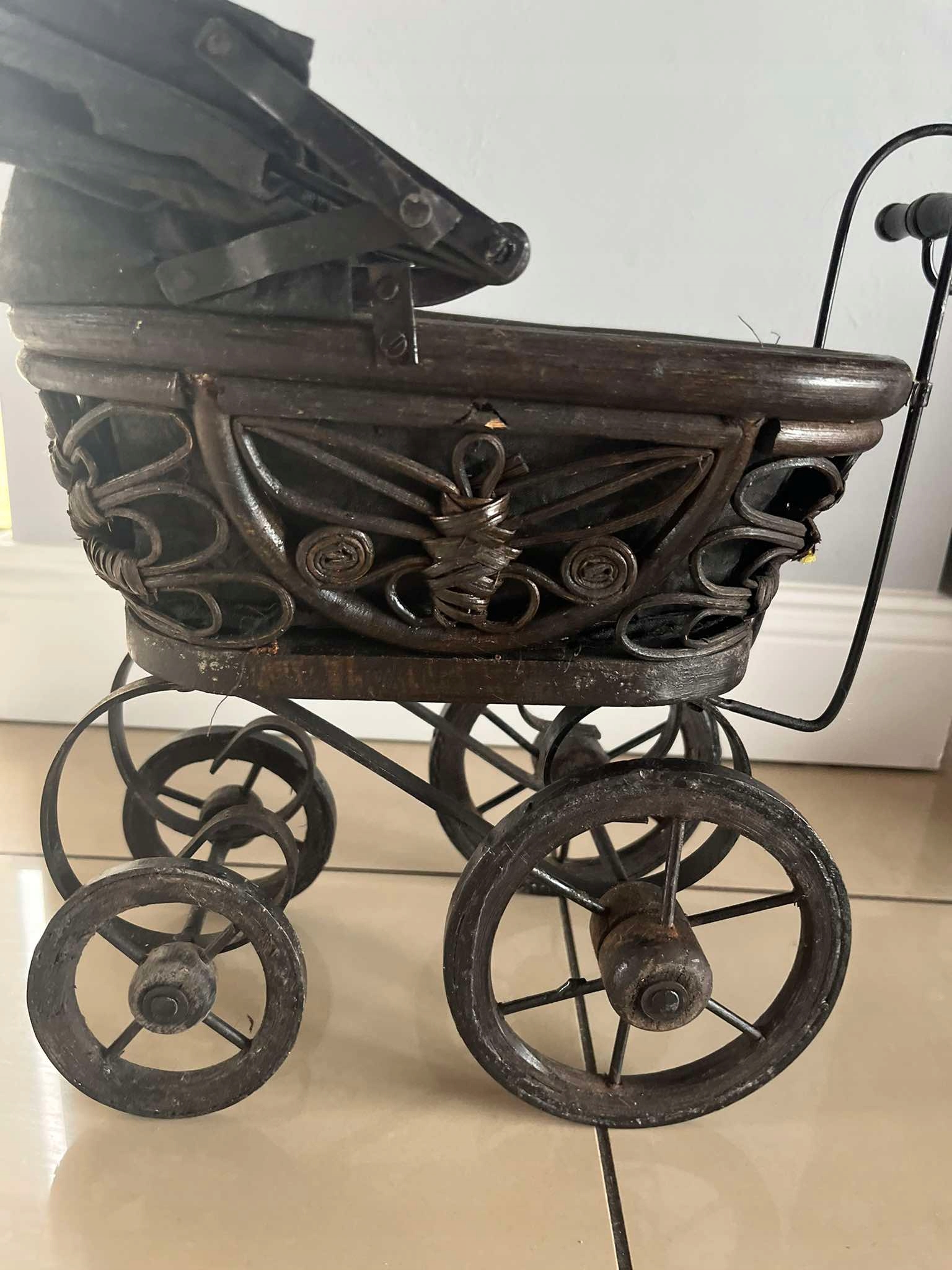 Stary drewniany wózek dla lalki retro 35x30x18 cm