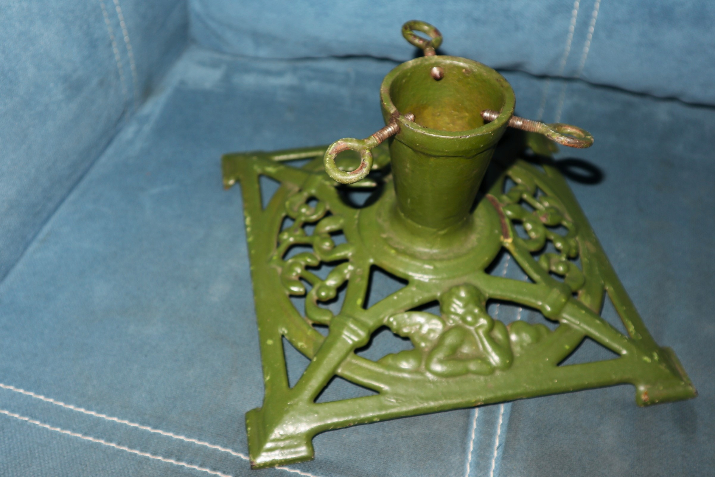 STARY ŻELIWNY STOJAK POD CHOINKĘ Z ANIOŁKIEM
