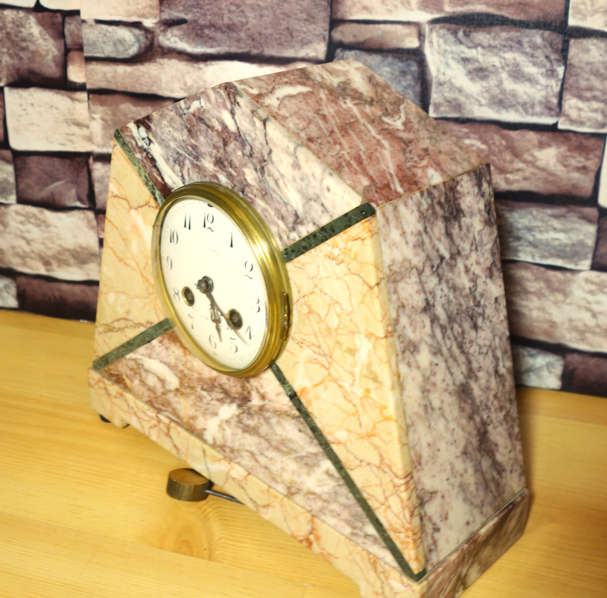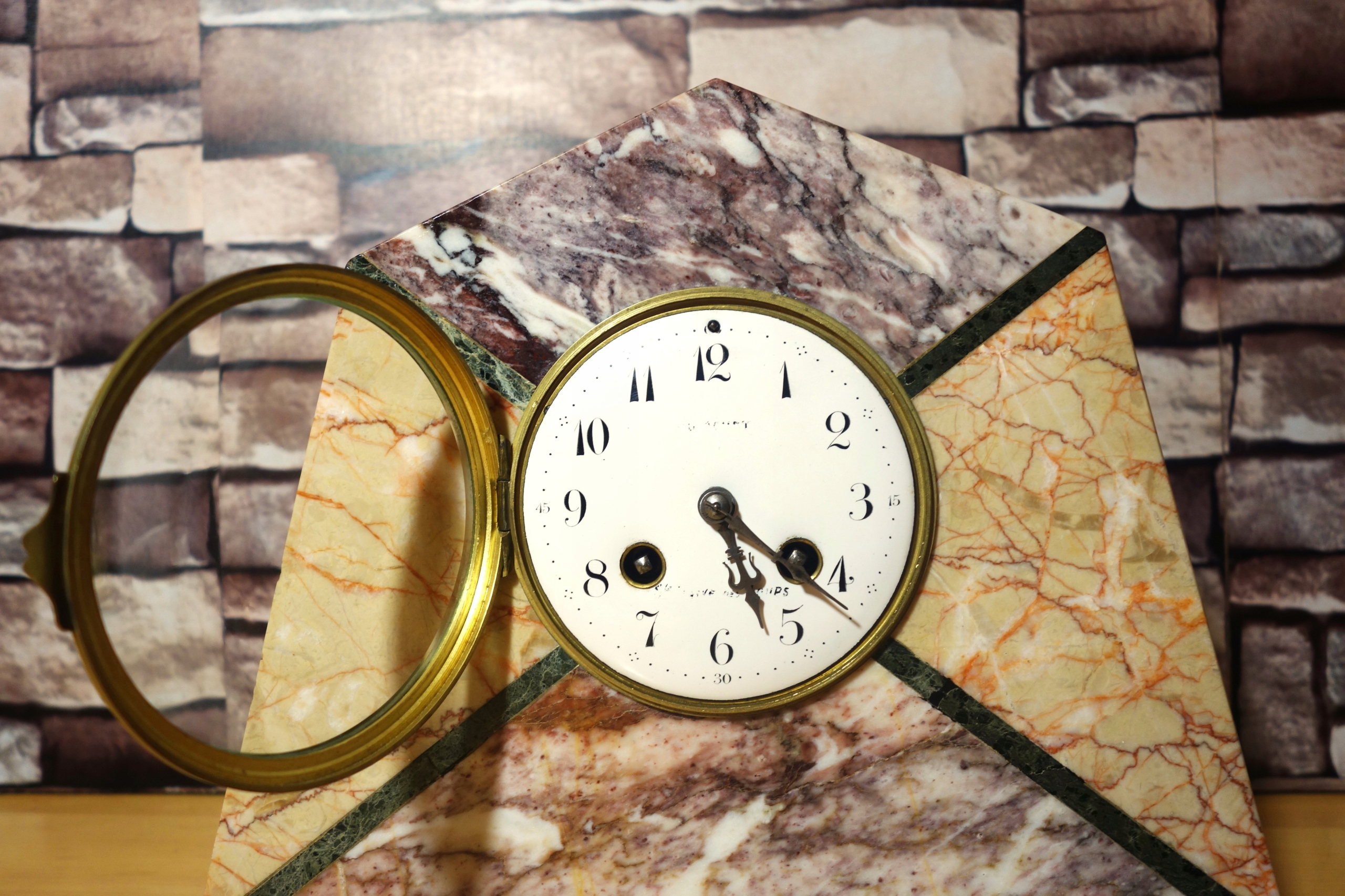 Stary Francuski ,zegar kominkowy polerowany marmur mozaikowy