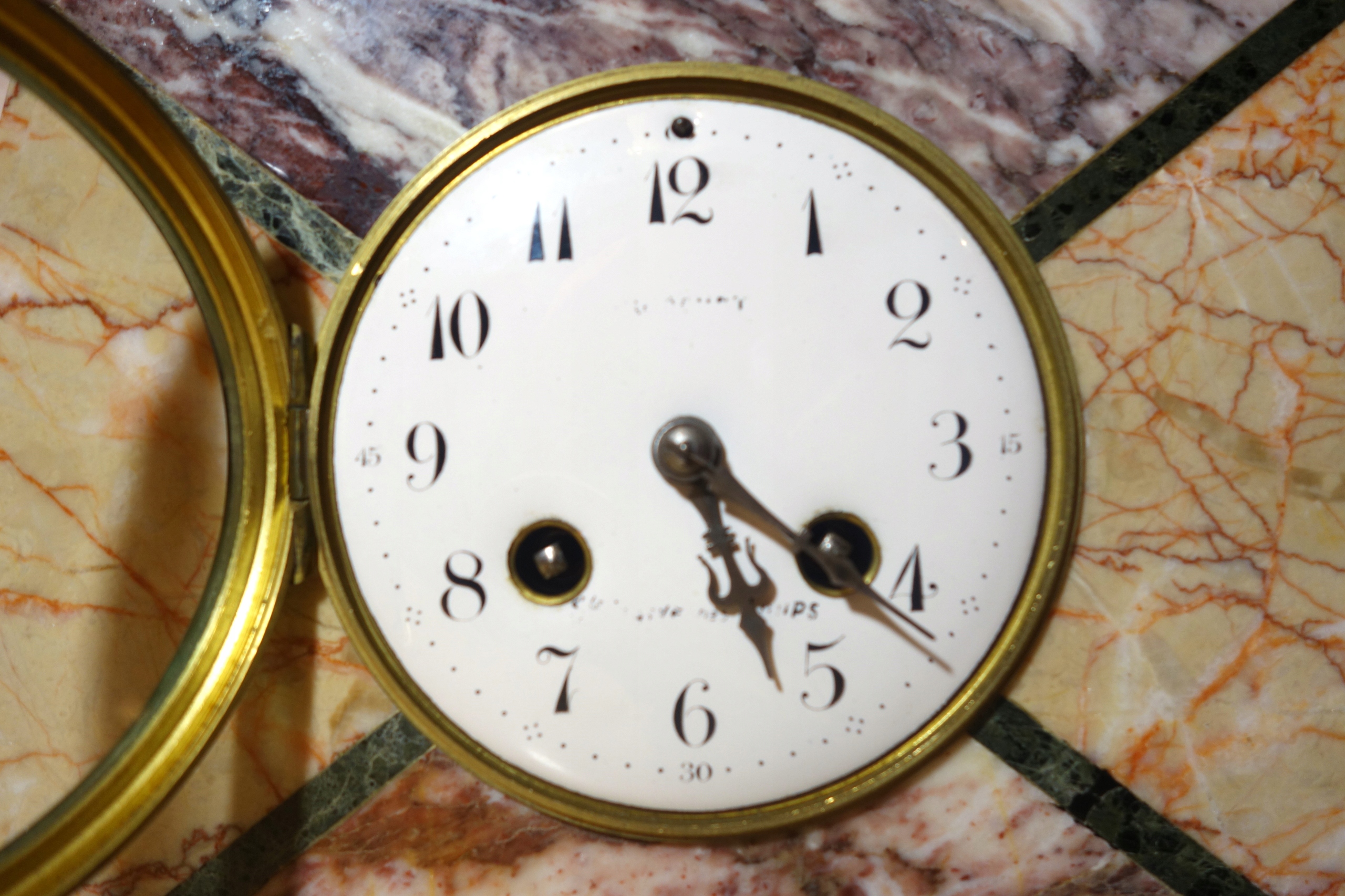 Дуже декоративний годинник, поєднання різних типів і кольорів полірованого мармуру, створює дивовижний візуальний ефект