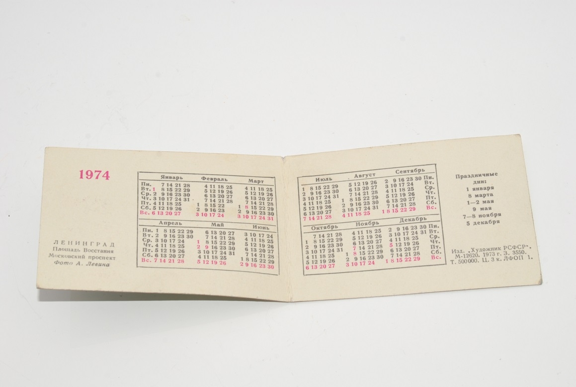 Старий кишеньковий календар 1974 CCCP, антикварна реліквія колекціонера