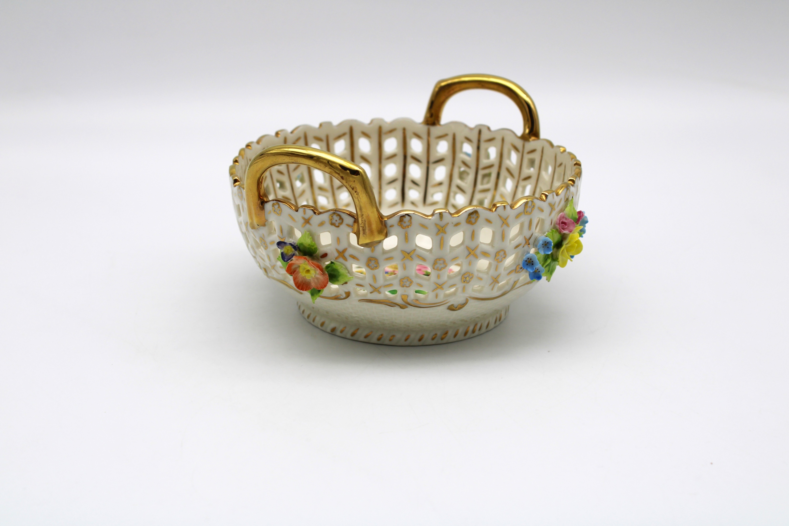 STARY KOSZYK PORCELANA RĘCZNIE DEKOROWANA