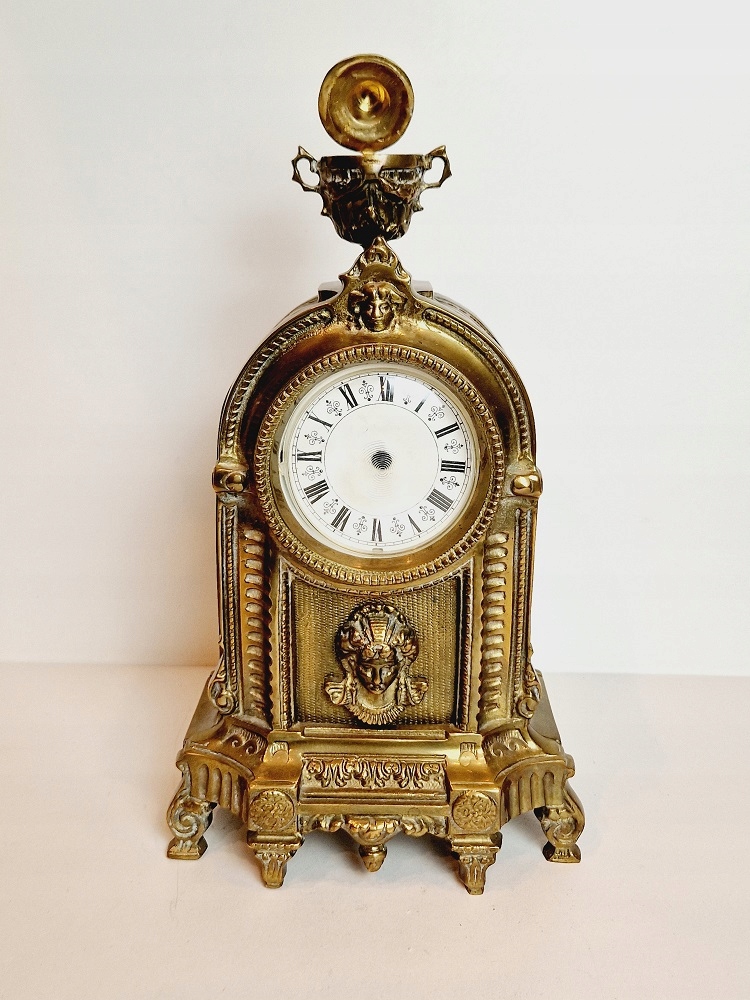 STARY MASYWNY (3,01 kg) STYLIZOWANY ZEGAR KOMINKOWY - OBUDOWA Z BRĄZU /103