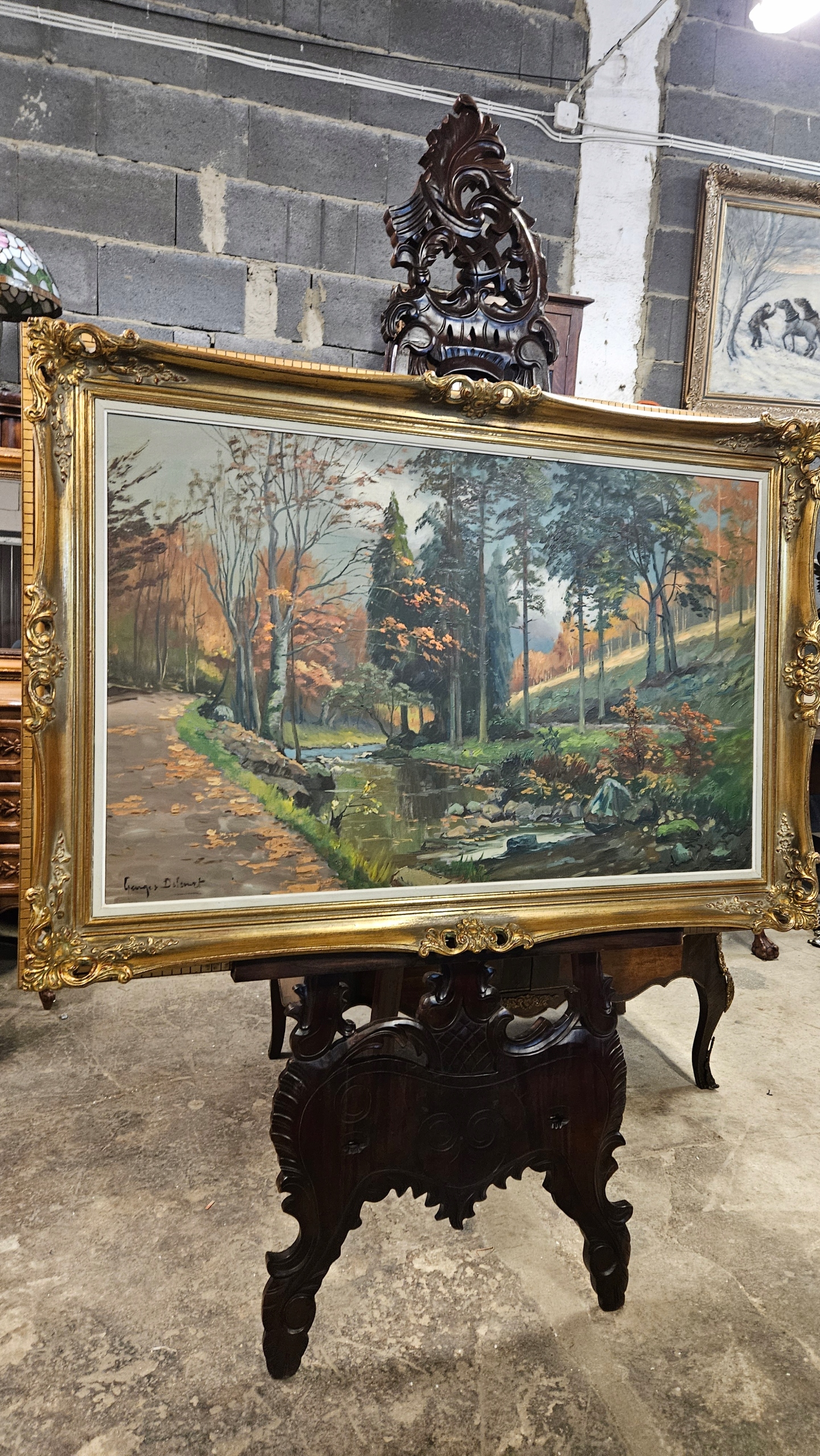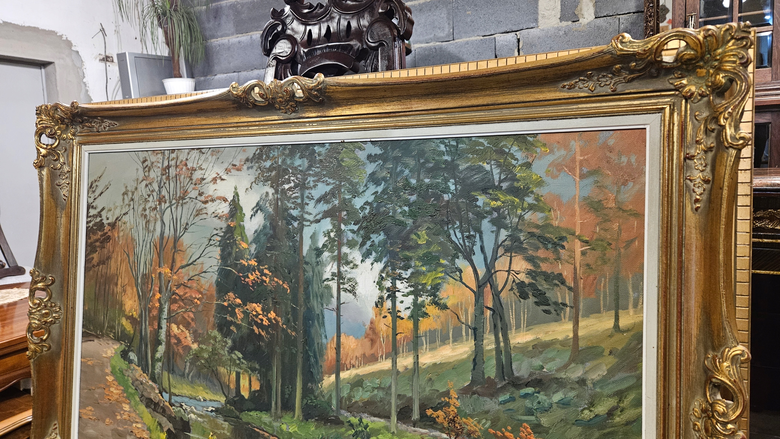 Stary Piękny Obraz Bardzo B. Duży malowany ,,las ,,
