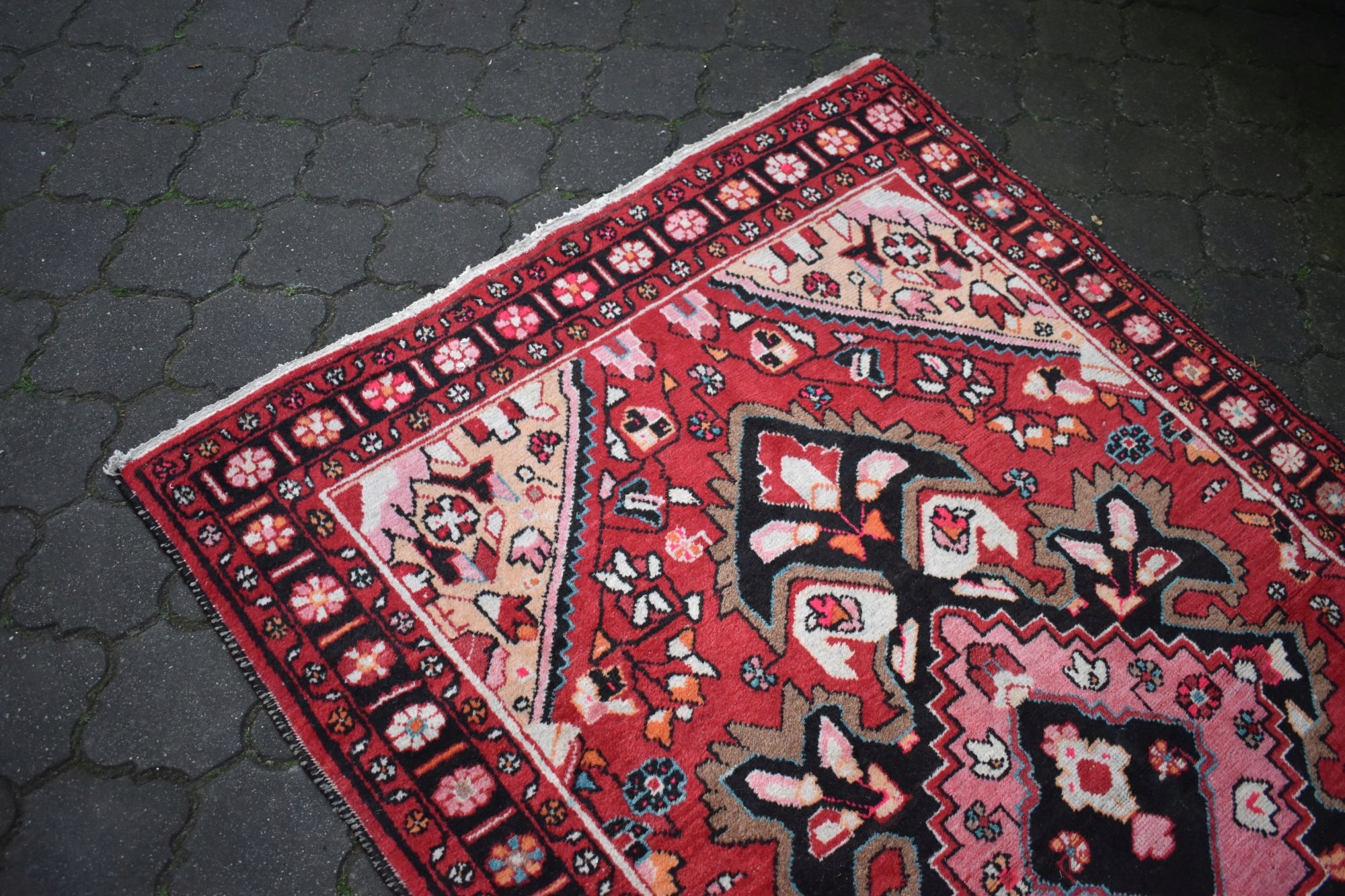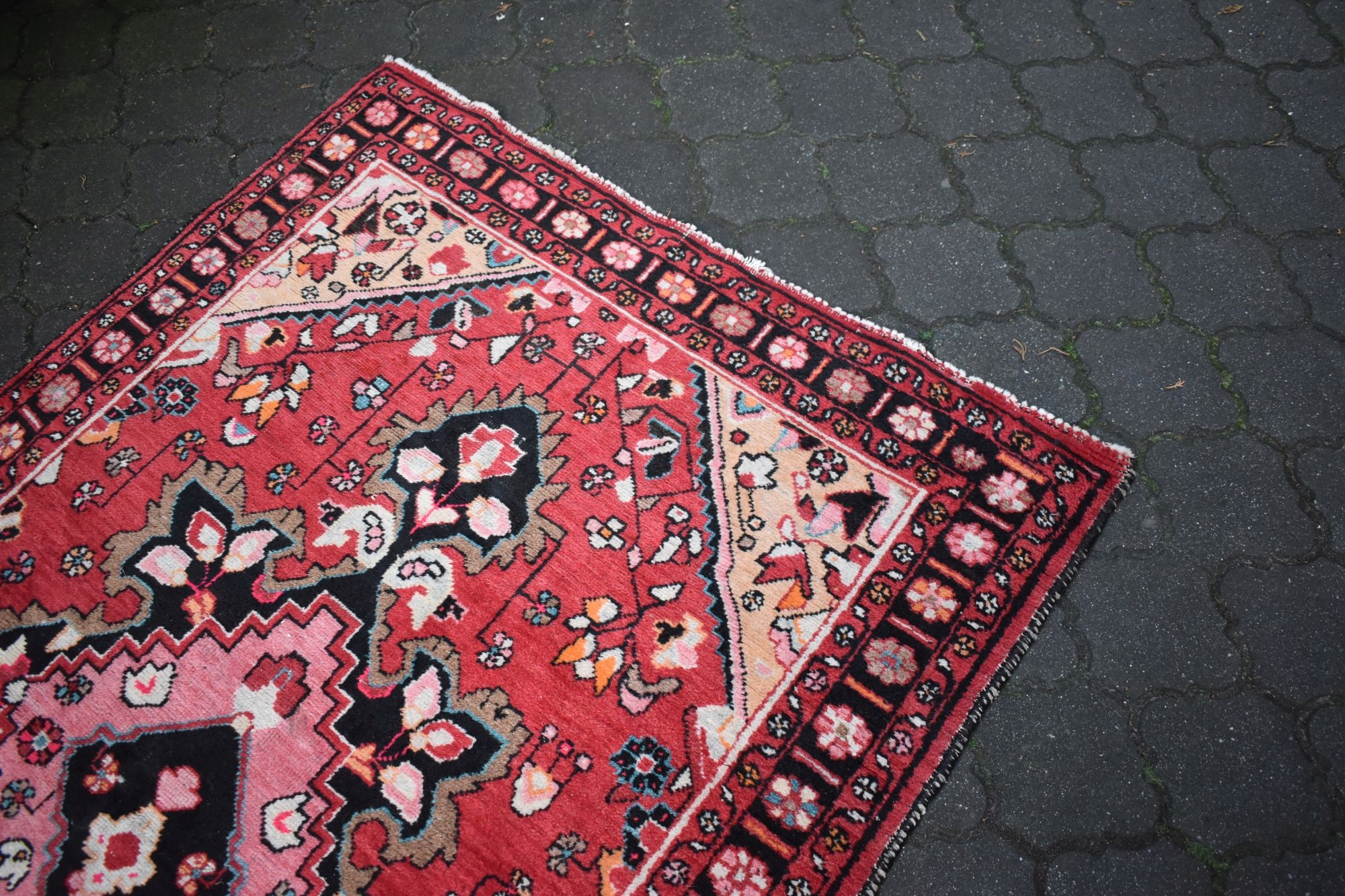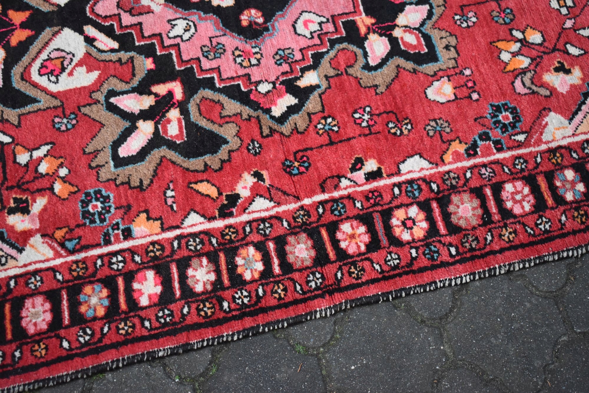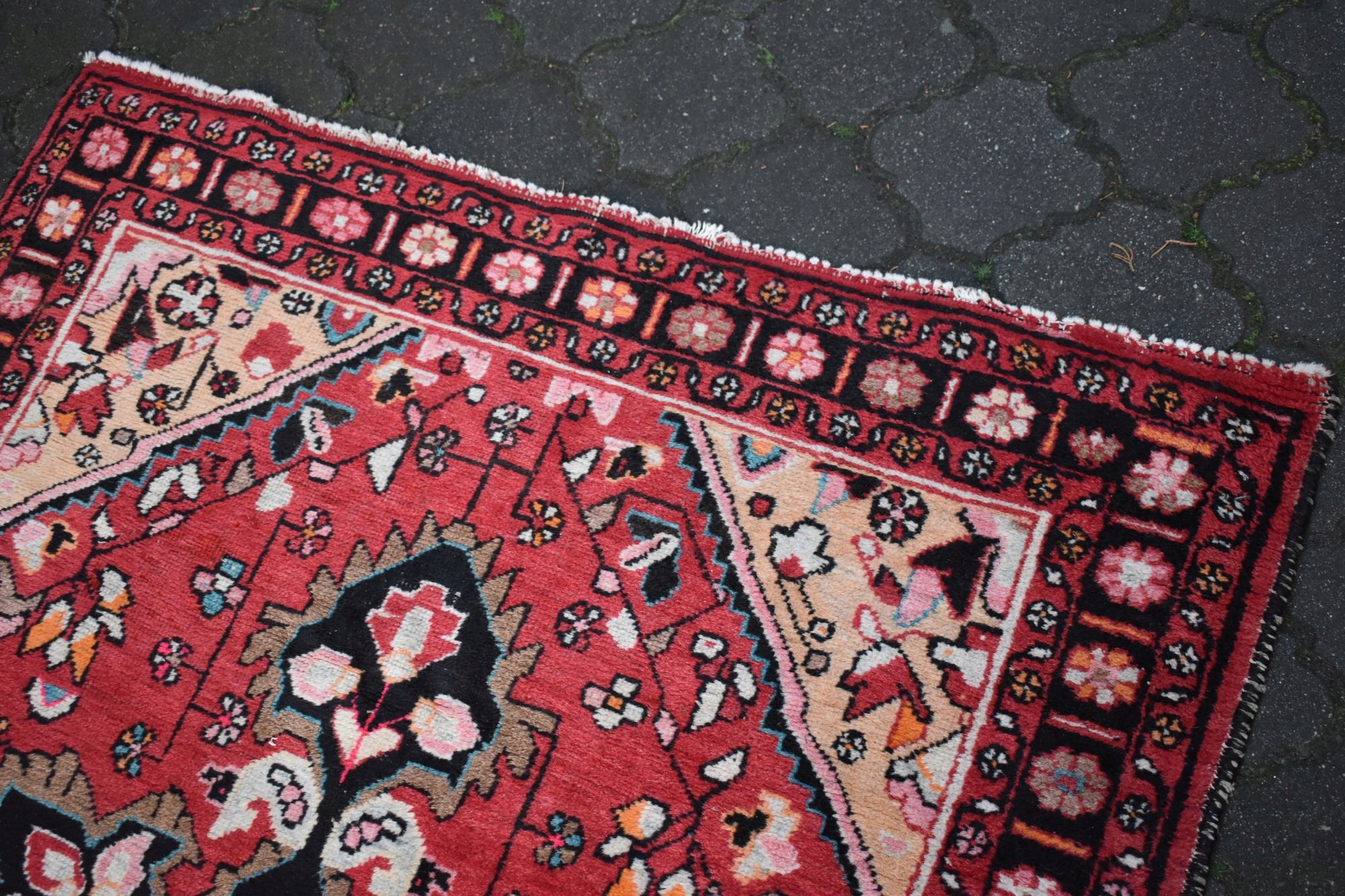 На наступному аукціоні я пропоную вам старий, вовняний, хитромудрого ручного виткання, кочовий перський килим - Зроблено в Ірані! Килим щільно витканий і дуже стійкий.