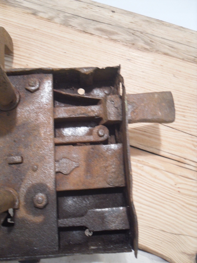 Stary zamek wierzchni skrzynkowy komplet 2 klamki PRL WARTO zamek do drzwi