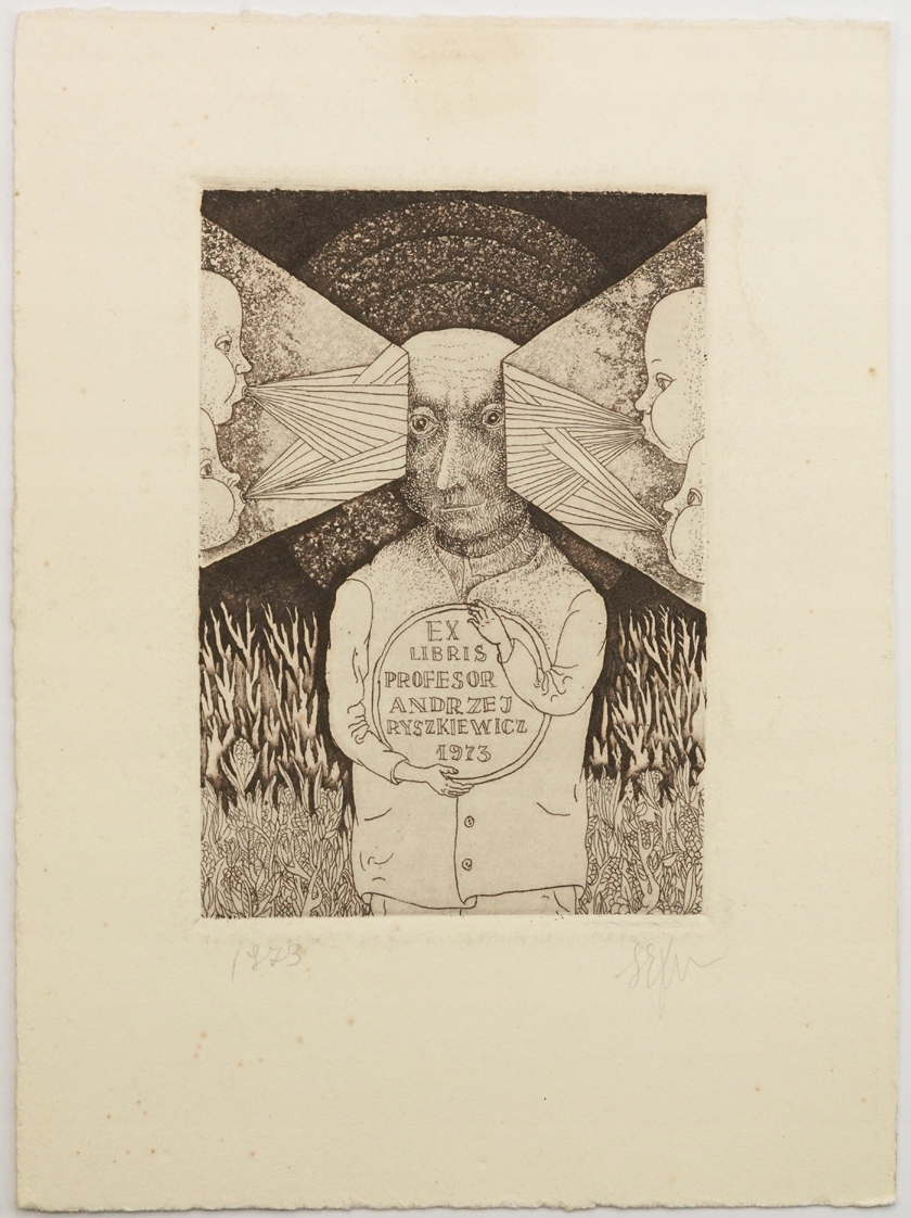 Stasys Eidrigevicius Exlibris Profesor Andrzej Ryszkiewicz 1973 rok