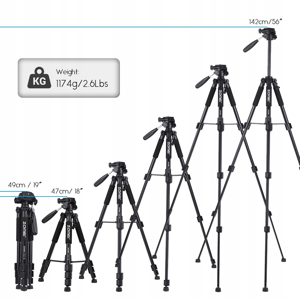 【Компактний і легкий】 Виготовлений із високоякісного алюмінієвого сплаву, штатив є компактним, портативним і легким зі складними ніжками.