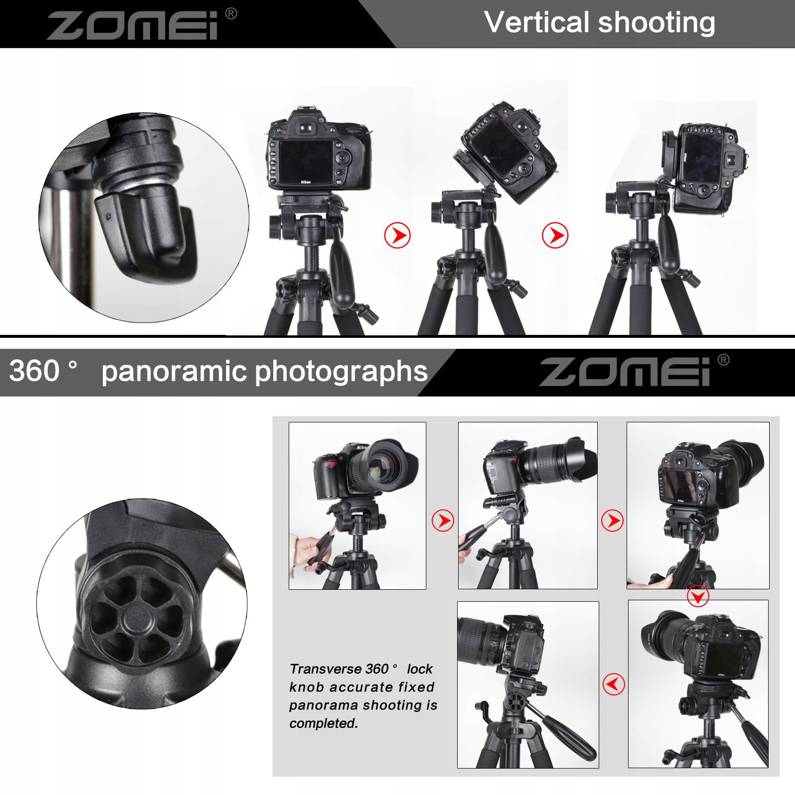 【Подовження】 Штатив має трисекційну пряжку для регулювання висоти та подовжену центральну колону. Користувач може розширювати штативи для застосування різної висоти.