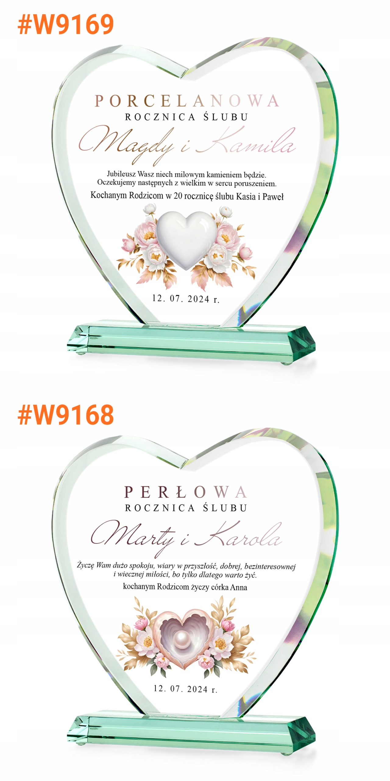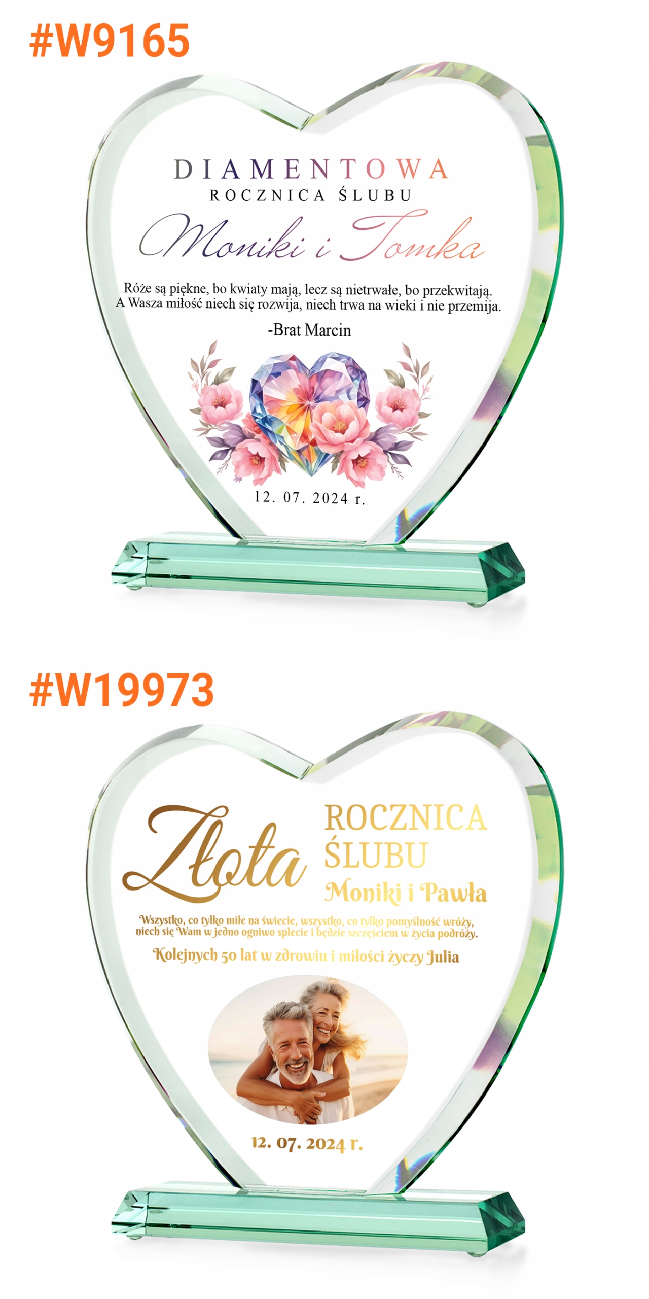 Якщо ви шукаєте оригінальний подарунок на річницю весілля , тоді дайте унікальну статуетку з барвистим принтом . Скло серце було повністю виготовлене з густого скла, що робить його стабільним. На статуетці буде застосовано барвистий персоналізований візерунок . Такий подарунок обов'язково зробить ваших близьких щасливими!