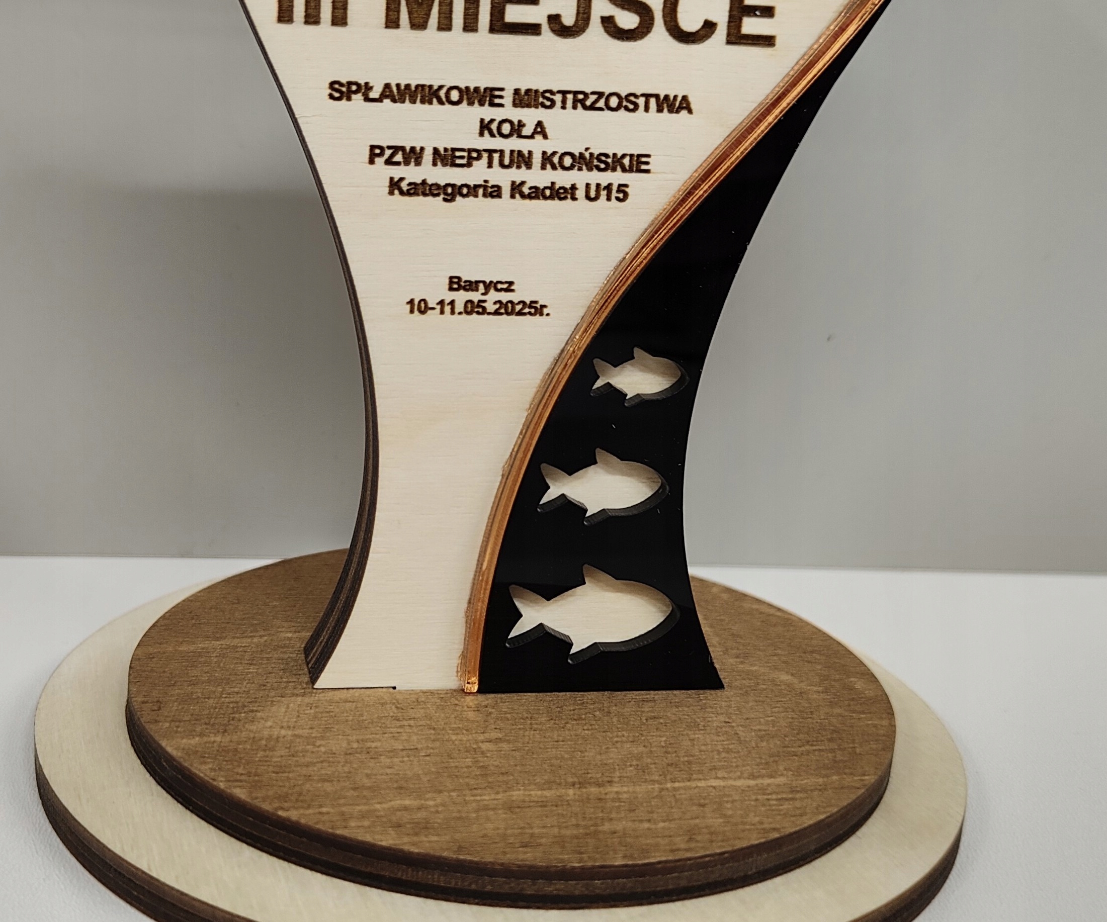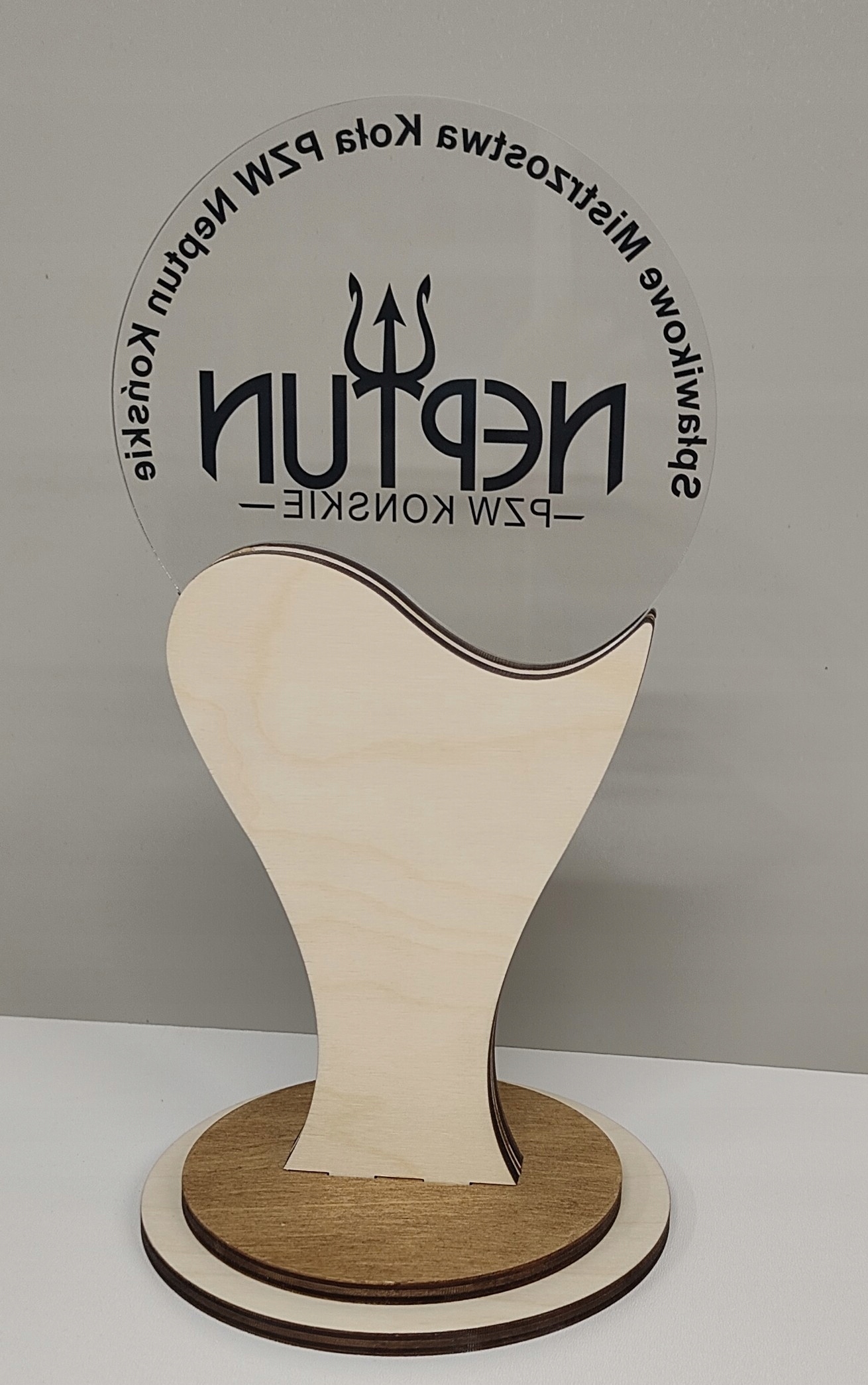 Оригінальна, красива та унікальна статуетка, виготовлена з комбінації фанери та прозорого оргскла. Крім того, коричневе, дзеркальне оргскло та чорне доповнюють усе.