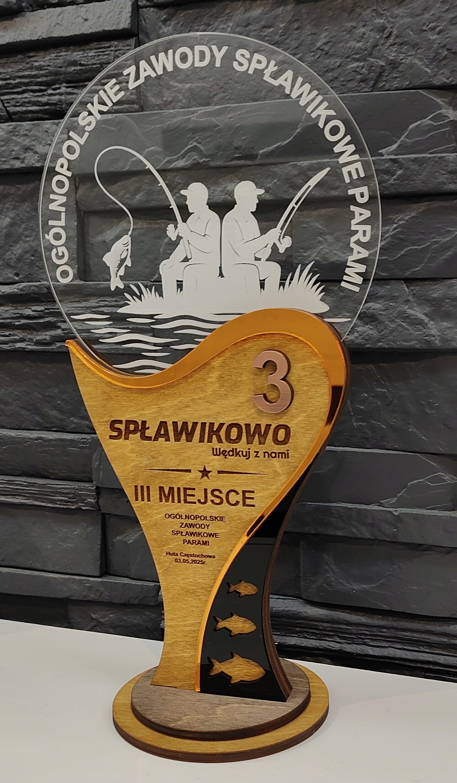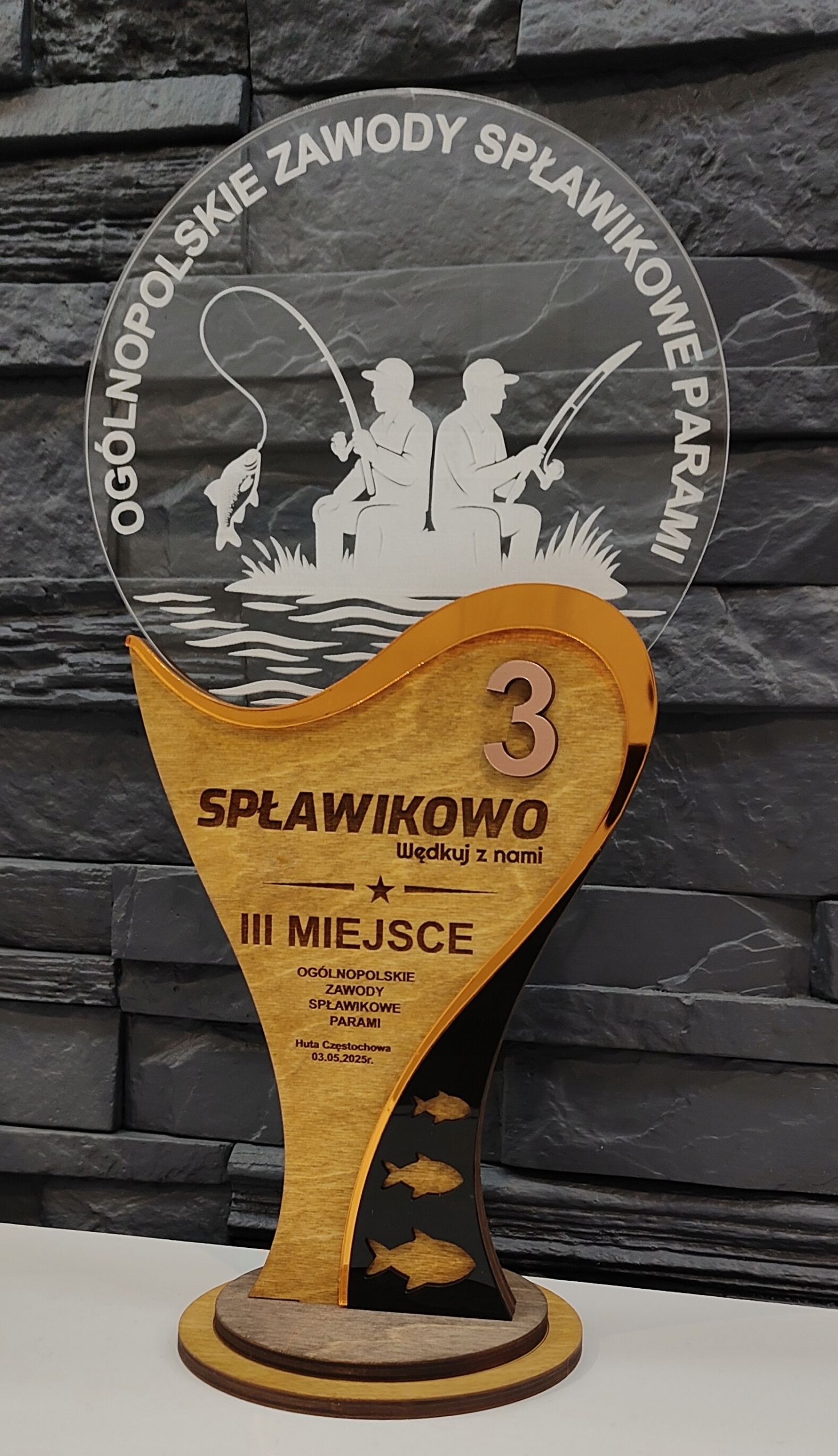 Статуетка, кубок, кубок, 3 місце, оргскло, коричневе дзеркало, УФ-друк, гравіювання, 35 см