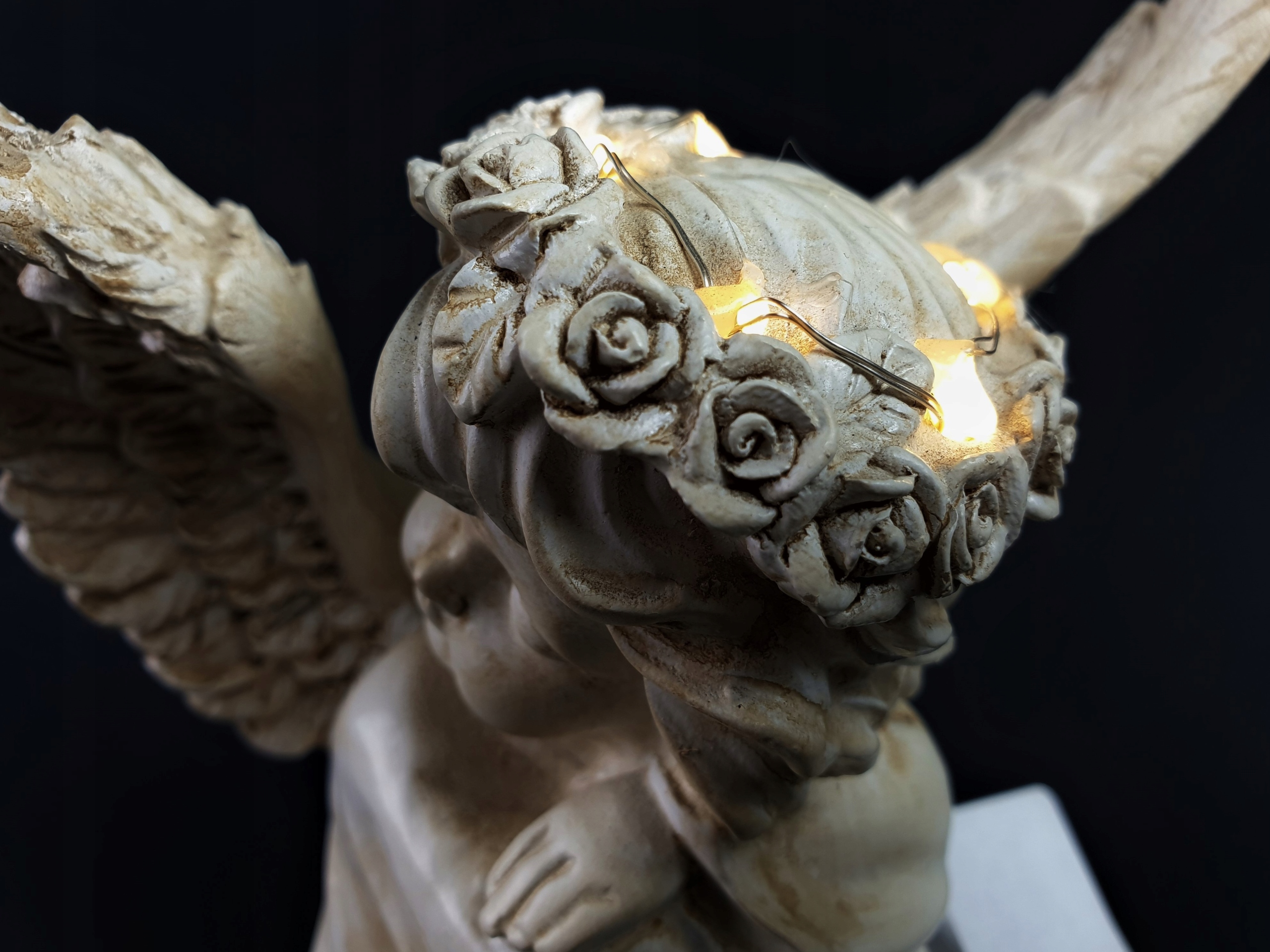 Завдяки використанню енергозберігаючих світлодіодів як джерело світла, він представляє неймовірний ефект, освітлюючи фігуру ангела теплим білим кольорами.