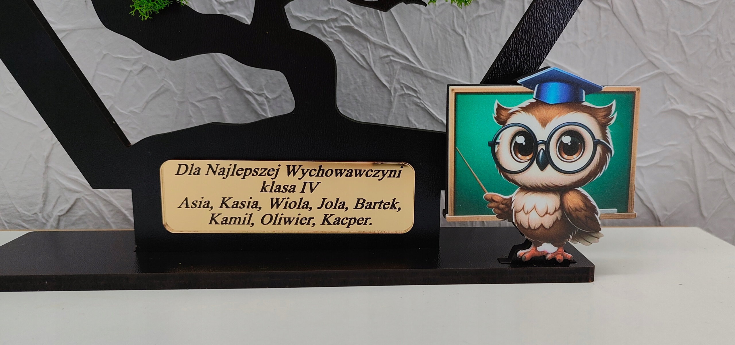 Правильний, зразковий опис - 3А; «Діти народжуються з крилами, вчителі допомагають їм їх розвивати». Дякую, 3А клас; золота табличка; сова S2