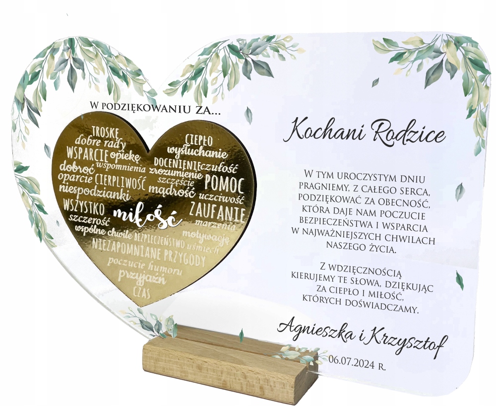Статуетка у формі серця з принтом для батьків. Подаруйте своїм батькам оригінальний подарунок, який надовго залишиться в їх пам'яті. Такий подарунок неодмінно викличе емоції і залишиться у вашій пам'яті на довгі роки. Статуетка з акрилового скла із золотим серцем із дзеркальним ефектом - унікальний подарунок на подяку батькам у день весілля.