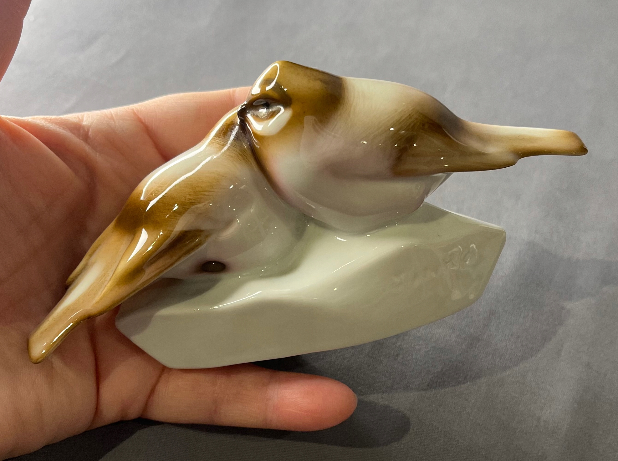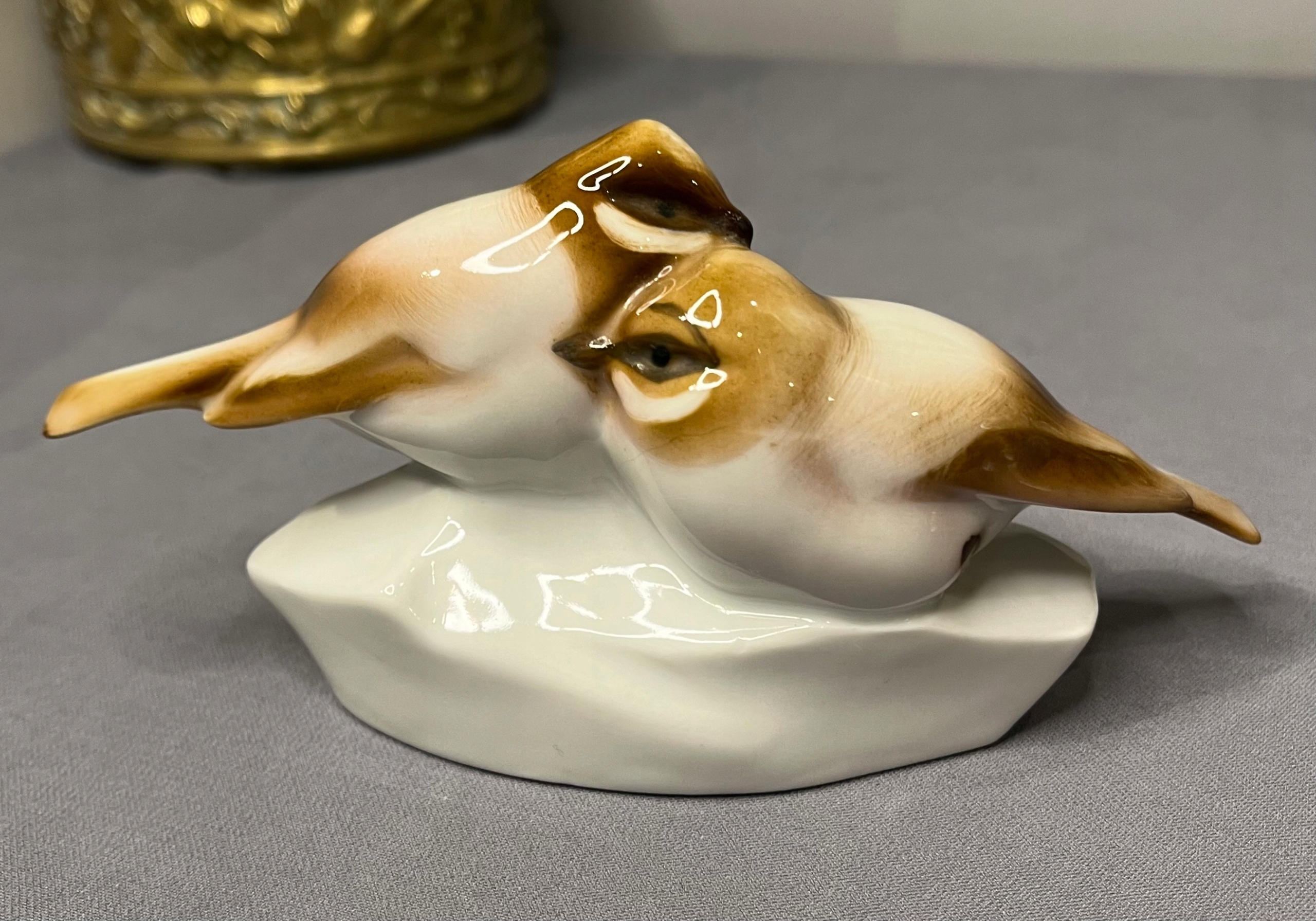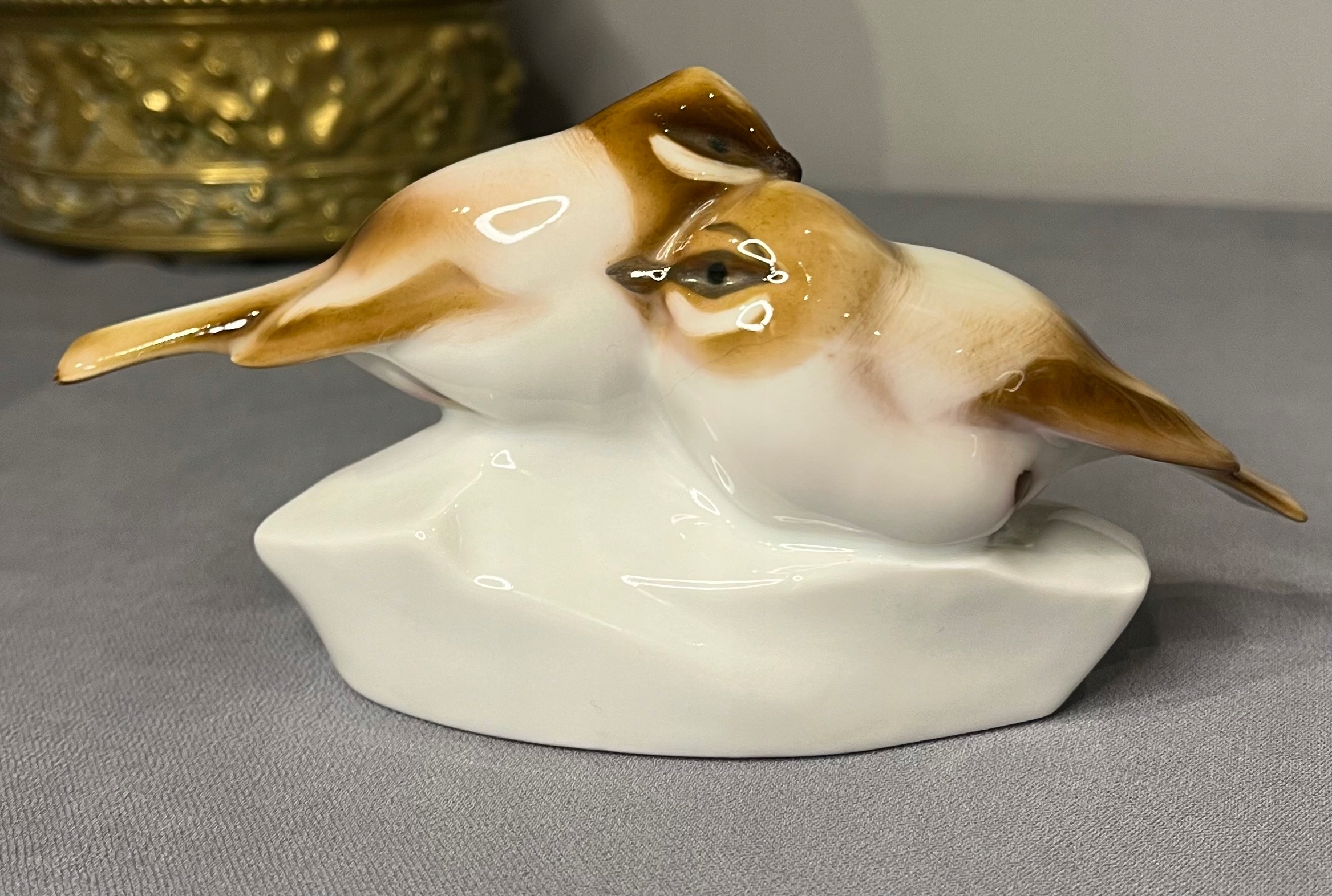 Антична старовинна пара пташок Zsolnay Pecs - ніжний рожевий і бронзово-коричневий колір, бездоганна порцеляна, 1930-ті роки, розкрита Андрашем Сінко.