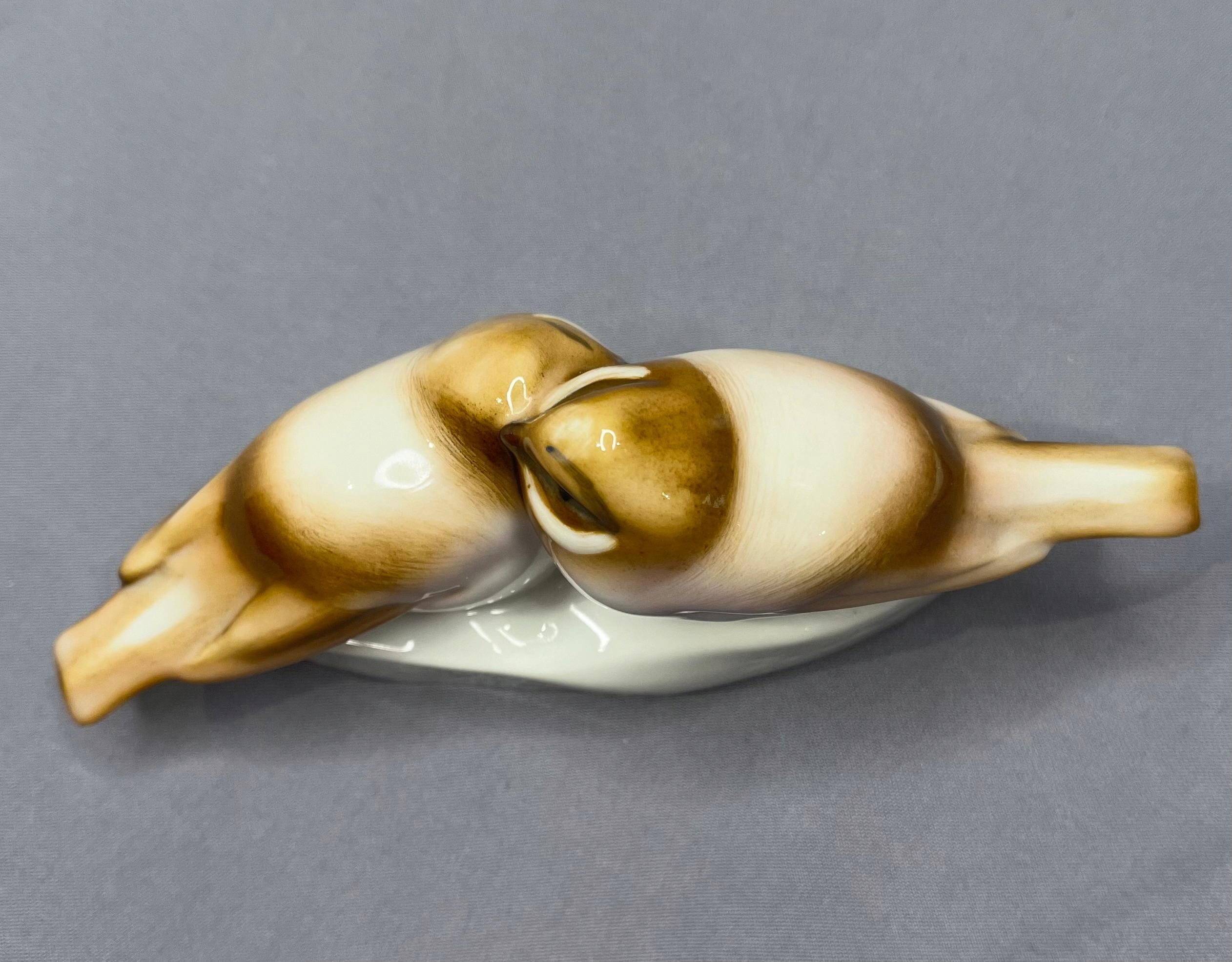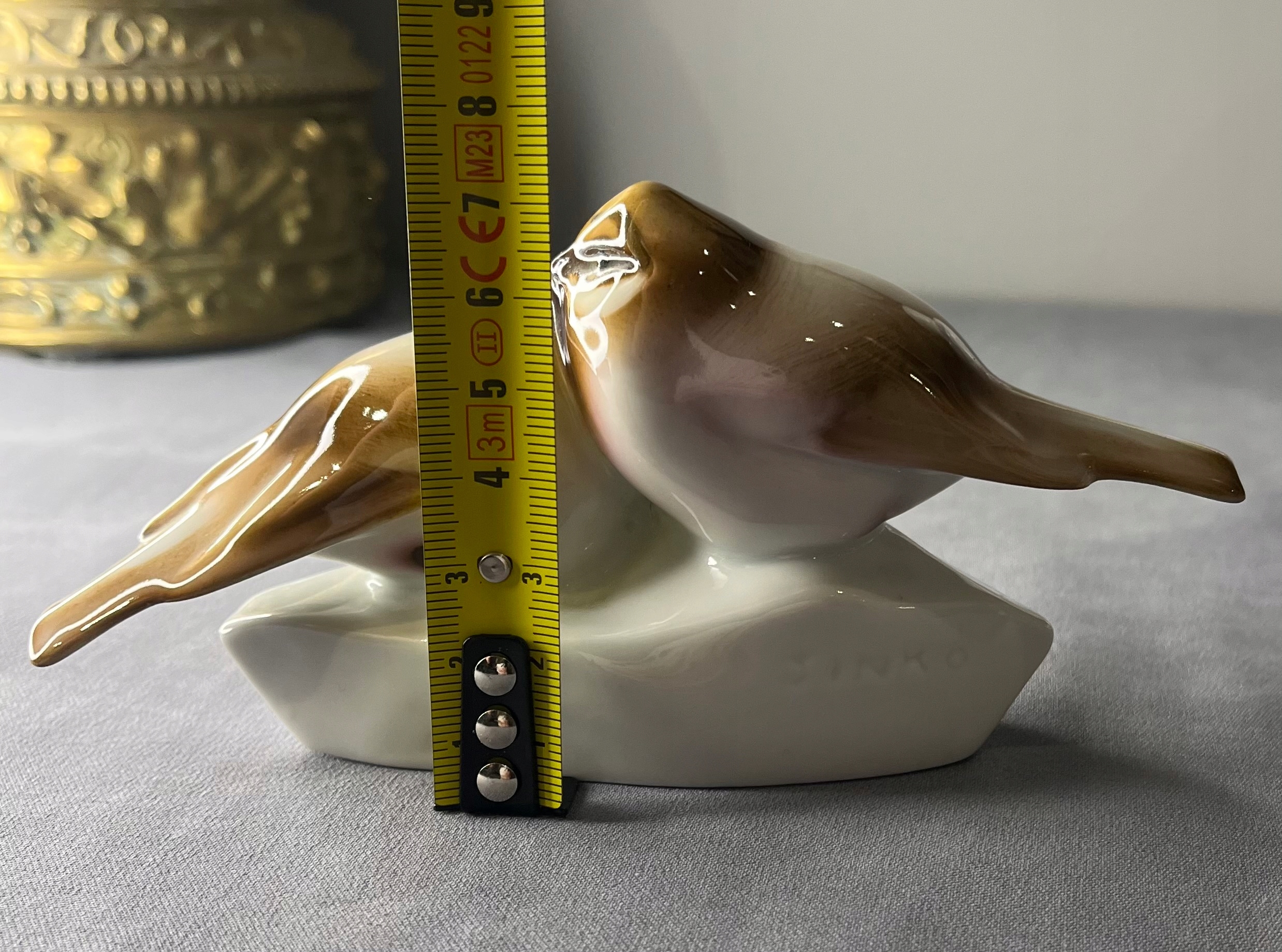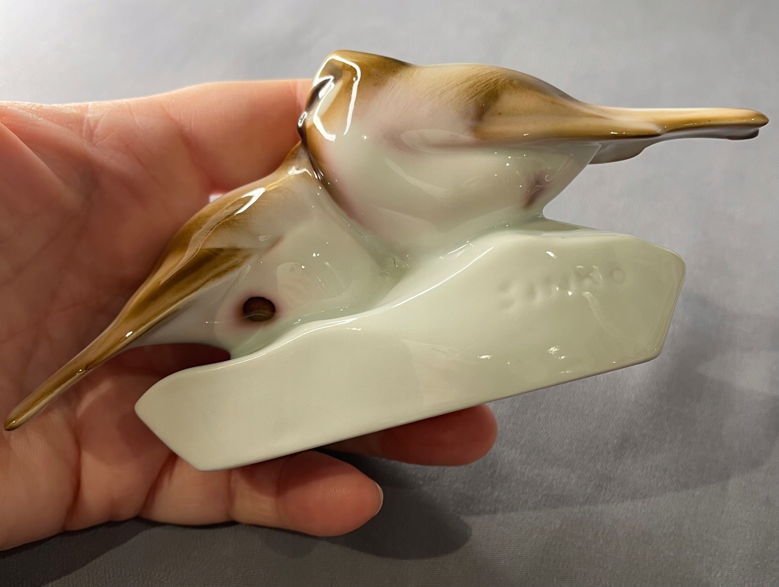 Антична, вінтажна пара пташок Жолнай Печ - дуже ніжного рожевого і теплого коричневого кольору, бездоганна порцеляна, 1930-ті роки, дизайн Андраша Сінко.