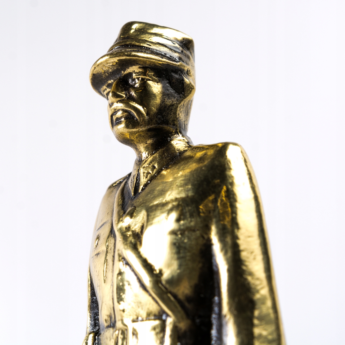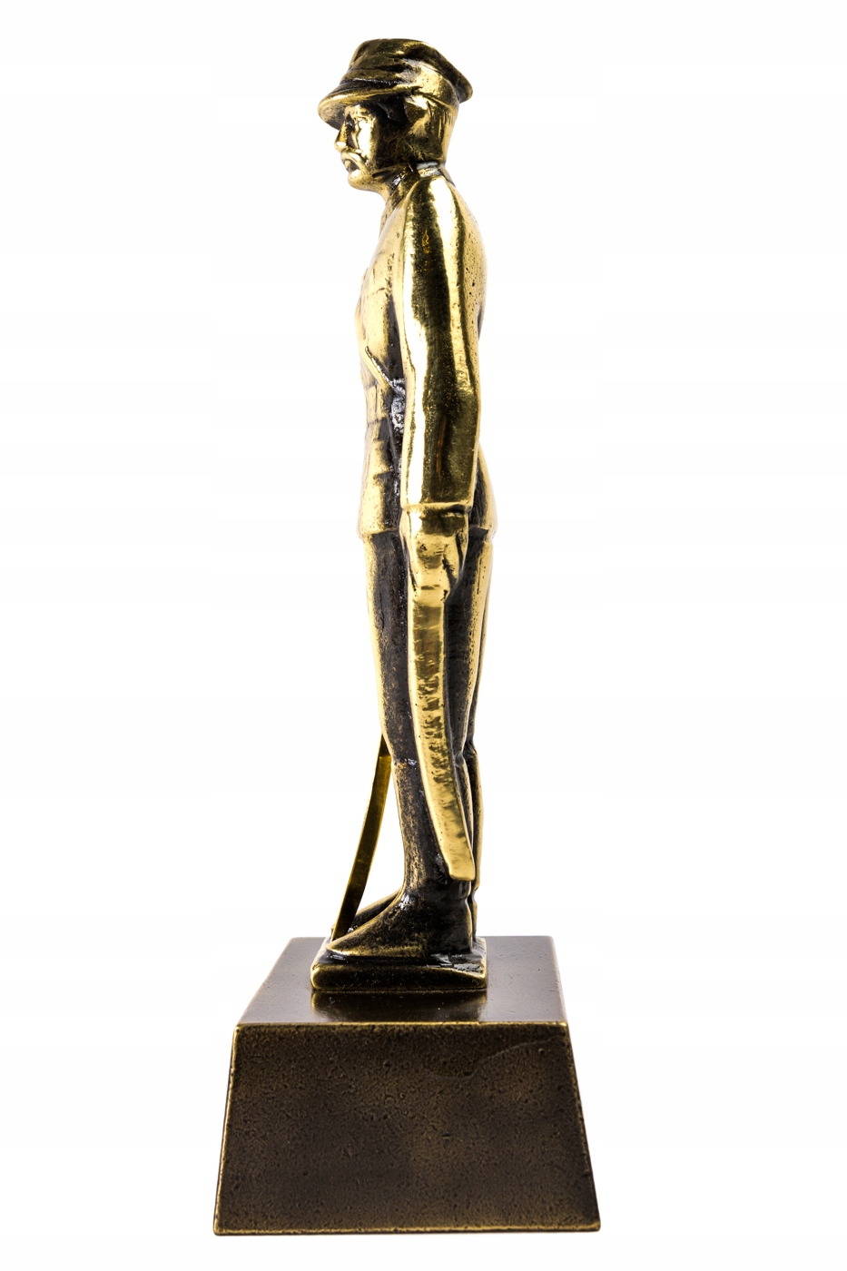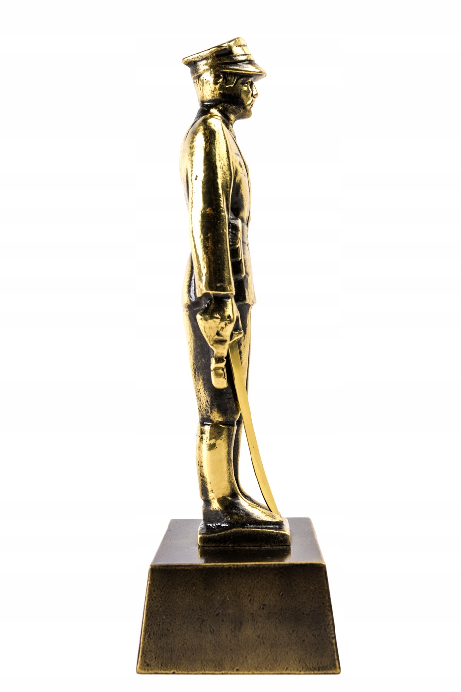 Виріб патинований, на відкритих місцях переполірований, в кутах темніший. Статуя солдата в парадному мундирі, відлита повністю. Клинок шаблі, який солдат тримає в правій руці, являє собою згорнутий прут, приклеєний до внутрішньої сторони руки. Плінтус прямокутний, гладкий, брусковий. Польський продукт, ми підтримуємо польські ремесла.