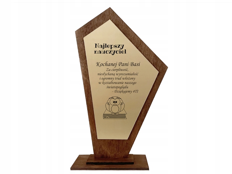 4 Блилка з будь -якою гравюрою приклеєна до статуетки. Квадрати, виготовлені з гравірувального ламінату, два кольори на вибір: срібло та золото.