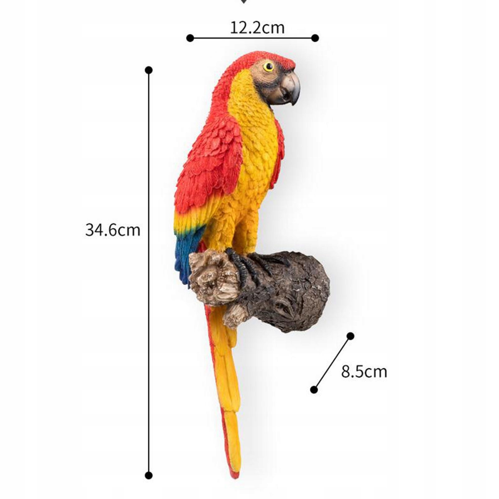 Виготовлений зі смоли, добре різьблений і гарно пофарбований, схожий на справжнього папугу.