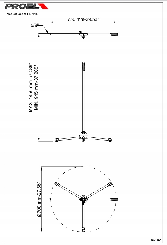 Statyw podłogowy z ramieniem do mikrofonu Proel RSM180