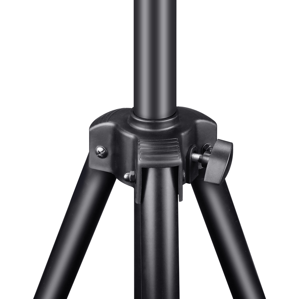 Стійка з замком і стандартною різьбою 3/8" для мікрофонів, мікрофонного обладнання, ізоляційних екранів (акустичних кабін) і сценічних колон. Професійний дизайн заснований на перевіреній формі штатива з діаметром опорних трубок 3,5 см і 3,8 см. Без ризику перекидання та нековзкі гумові ніжки гарантують, що ваш набір залишається на місці, незважаючи на вібрацію підлоги, покращуючи якість звуку без будь-яких перешкод.