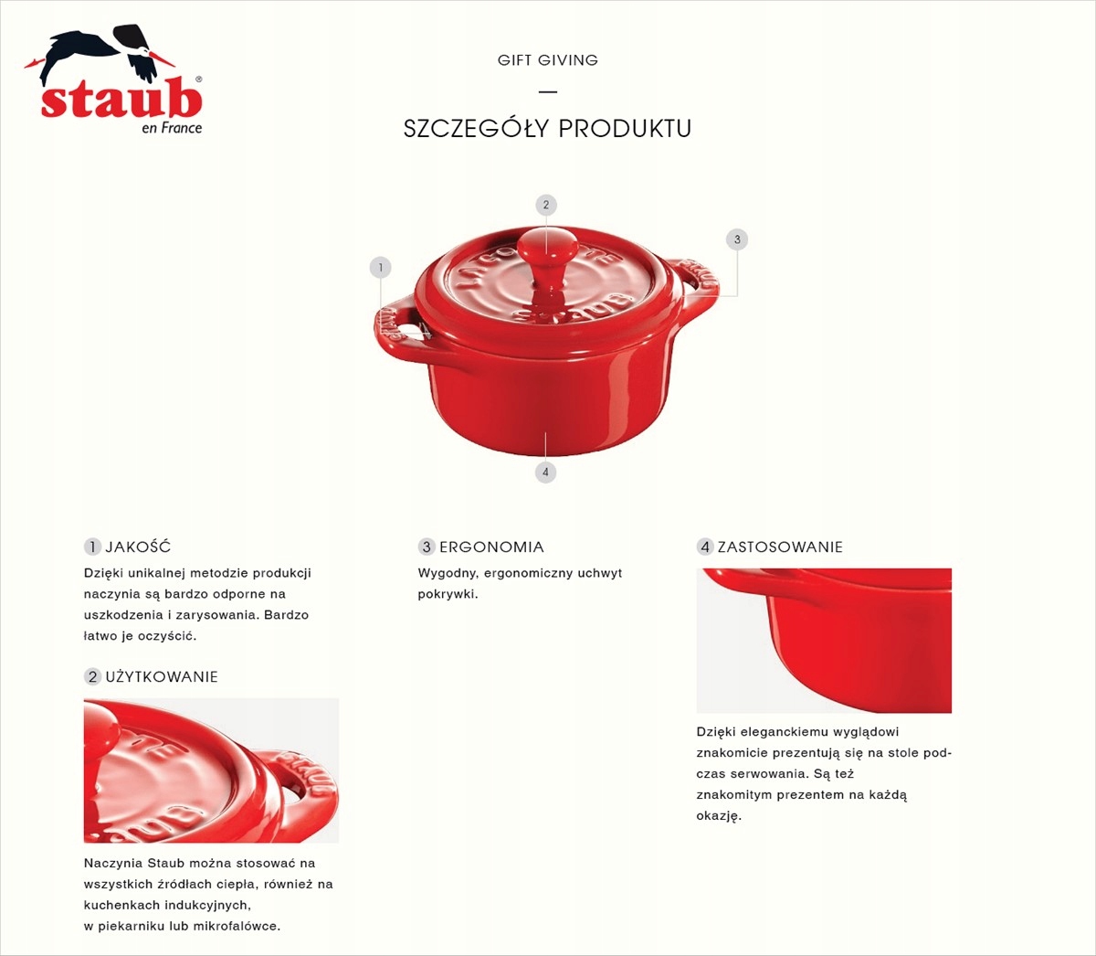 Вироблені в Ельзасі, вони характеризуються надзвичайною довговічністю та якісною роботою. Кожен продукт проходить безліч перевірок і випробувань, перш ніж потрапити до кінцевого одержувача. Компанія Staub суворо відповідає всім стандартам і сертифікатам ЄС.