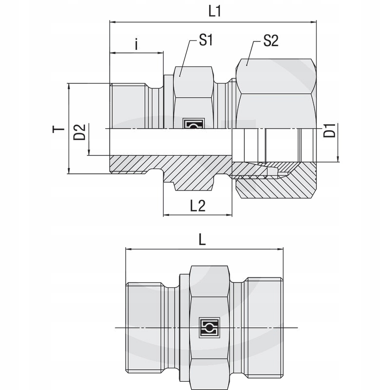 ✔ ✔ ✔ ✔ ✔ ✔ ✔ ✔ ✔ ✔ ✔ ✔ ✔… 2: метрична зовнішня циліндрична нитка, 24 ° Внутрішній конус • Тип побудови: простий роз'єм: DIN 2353 • Матеріал: сталь, покриття Zink -nikiel