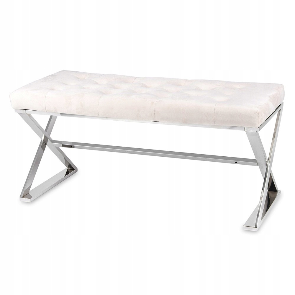 Стьобана лавка з кремового та сріблястого металу. Лавка неодмінно стане декоративним елементом, який додасть елегантного стилю вітальні та залу. Цікава ідея для практичного та оригінального доповнення інтер'єру. Він принесе багато тепла та шарму у ваш дім.