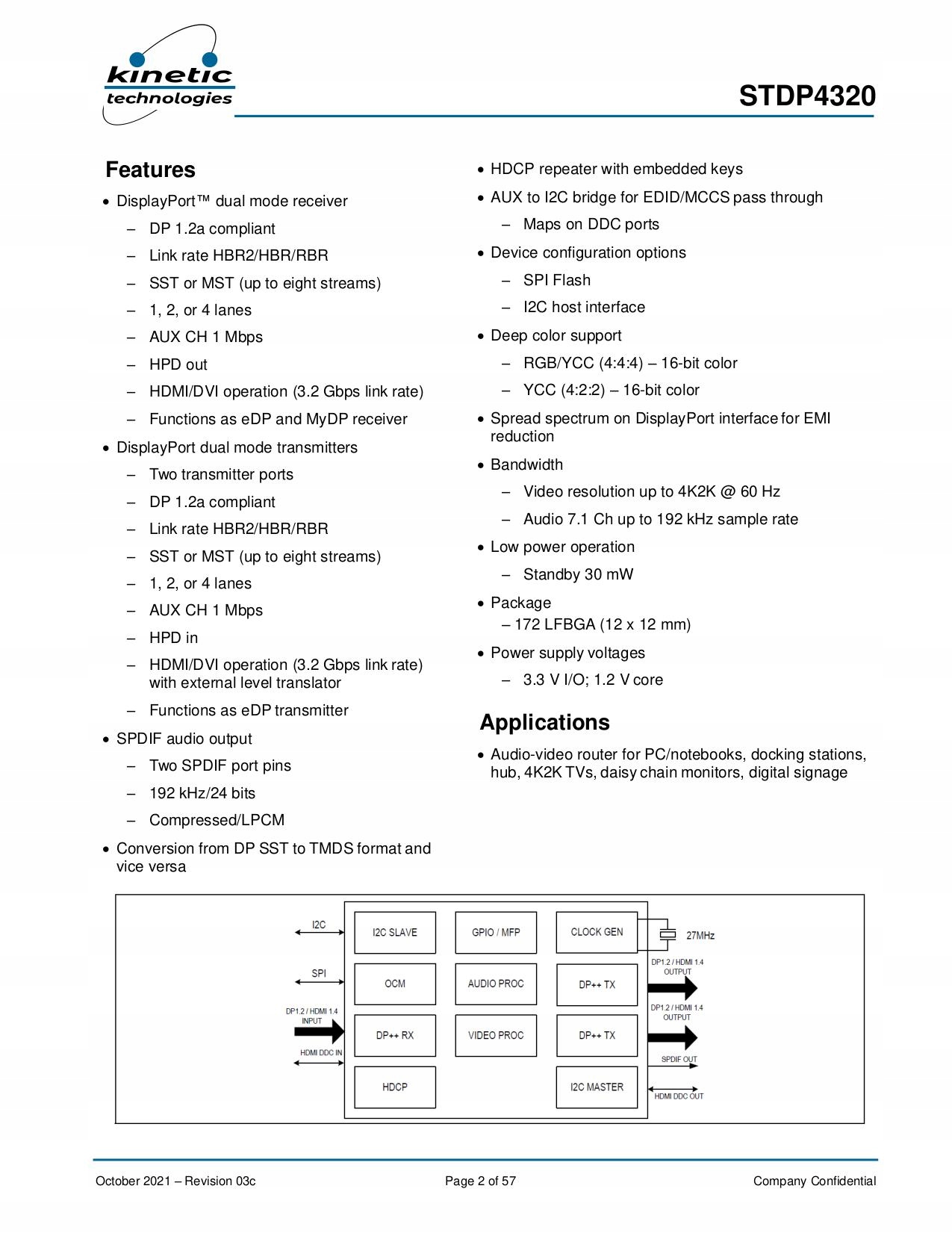 stdp4320-це швидкий інтегрований схема диспетчера дисплея, розроблений для де-мультипліна та rooding у таких додатках, таких як ноутбуки, док-концентатори, телевізор 4k2k, моніторинг з можливістю