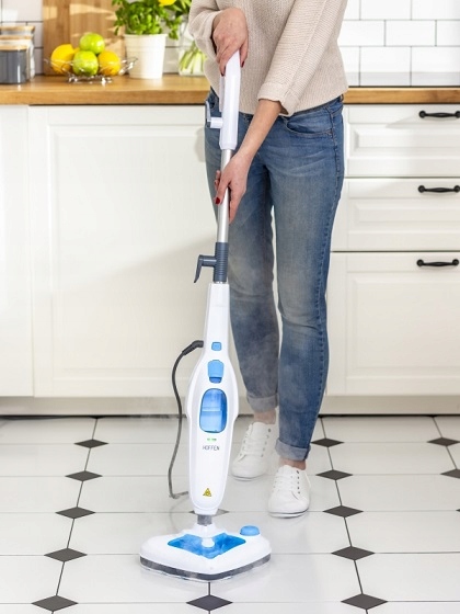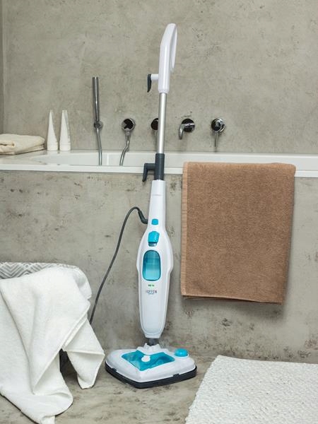 Hoffen Steam Mop з потужністю 1500 Вт очищається з водяною парою. Просто влийте воду та миючий засіб у відповідні контейнери, а через деякий час пристрій готовий до дії! Завдяки можливість використання миючого засобу, МОП видалить навіть складний бруд. Він очистить різні типи підлоги, має спеціальне накладення мікрофібри та рамку, завдяки якому пристрій також чудово підходить для килимів. Завдяки трикутній стопі, вона легко дістанеться важко, щоб дістатися до місць. Тепер миття підлоги - це чисте задоволення.
