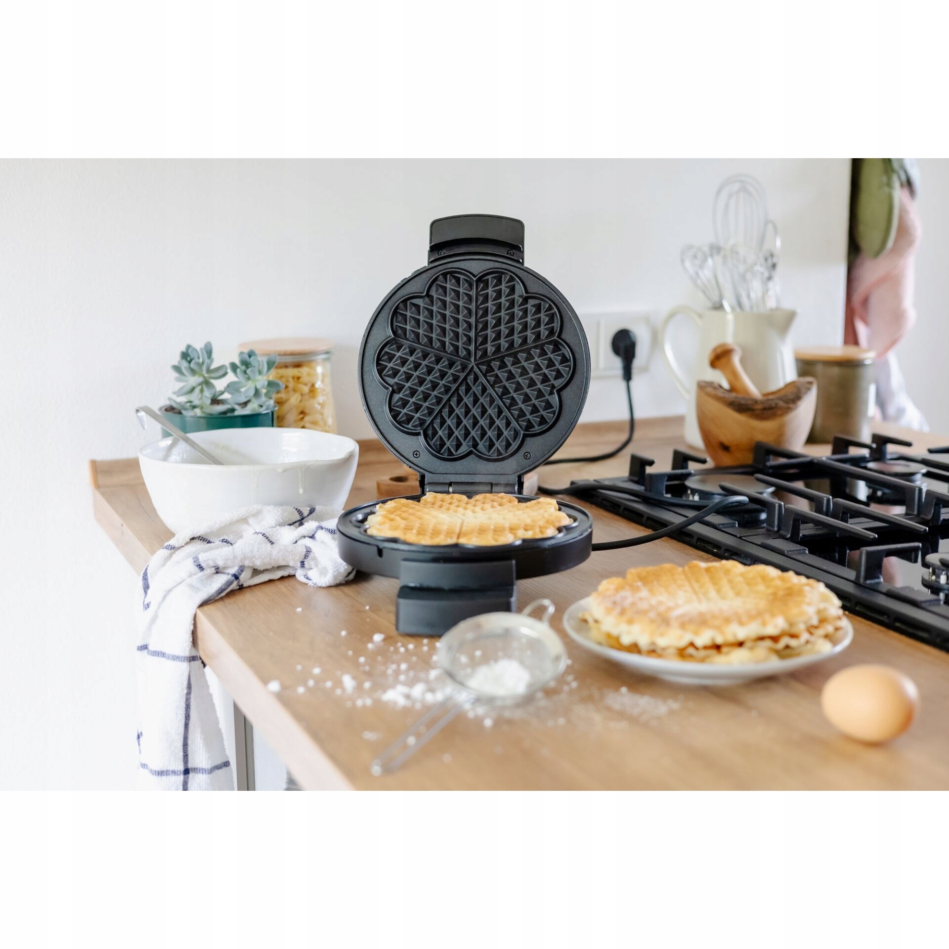 - Висока потужність: потужність 1200 Вт забезпечує швидке опалення і навіть випічку, завдяки якому вафлі завжди ідеально хрусткі.
