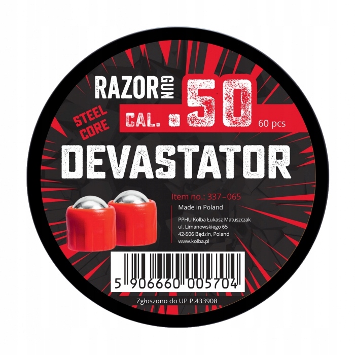 >RazorGun Steel Core Devastator калібр.50, 60 шт вироблено в Польщі. Виріб зареєстровано в Патентному відомстві P.433908.