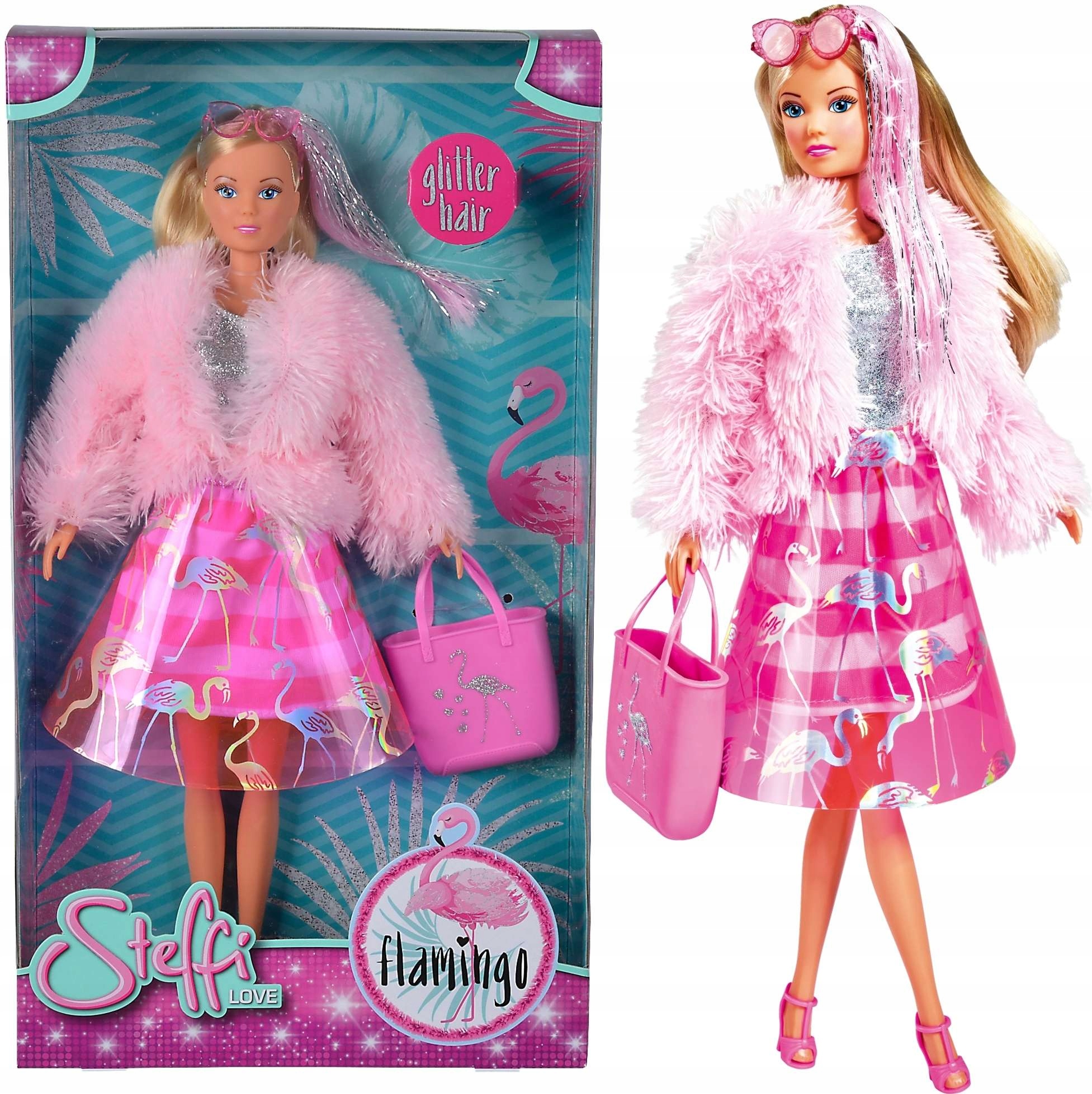 Стиль доповнюють аксесуари - у Стеффі рожеві прозорі сонцезахисні окуляри, велика сумочка з принтом фламінго та рожева пластикова спідниця, яку можна зняти та змінити стиль ляльки. Лялька має рухливі руки, ноги та голову, тому ви можете встановлювати її в різні динамічні пози та створювати історії.