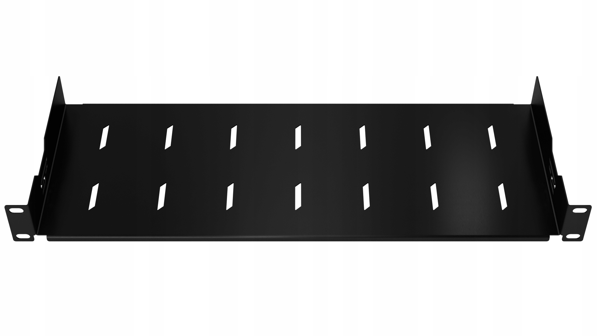 Полиця Rack Shelf поєднує в собі сучасність і функціональність. Елегантно профільована форма та передній і задній вигин листового металу не тільки додають естетичності, але й підвищують жорсткість конструкції. Виготовлений з листового металу з порошковим покриттям товщиною 1 мм, що гарантує довговічність і стійкість до пошкоджень. Все це вписується в стандарт 1U, який є вирішальним для ефективного управління простором у шафі RACK.