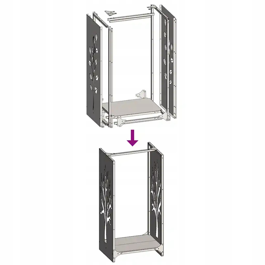 - Привабливий дизайн: завдяки унікальному та стильному зовнішньому вигляду цей тримач для дров поєднує функціональність з естетичними цінностями, підвищуючи елегантність вашого інтер’єру та зберігаючи деревину в хорошому стані стан. Добре.