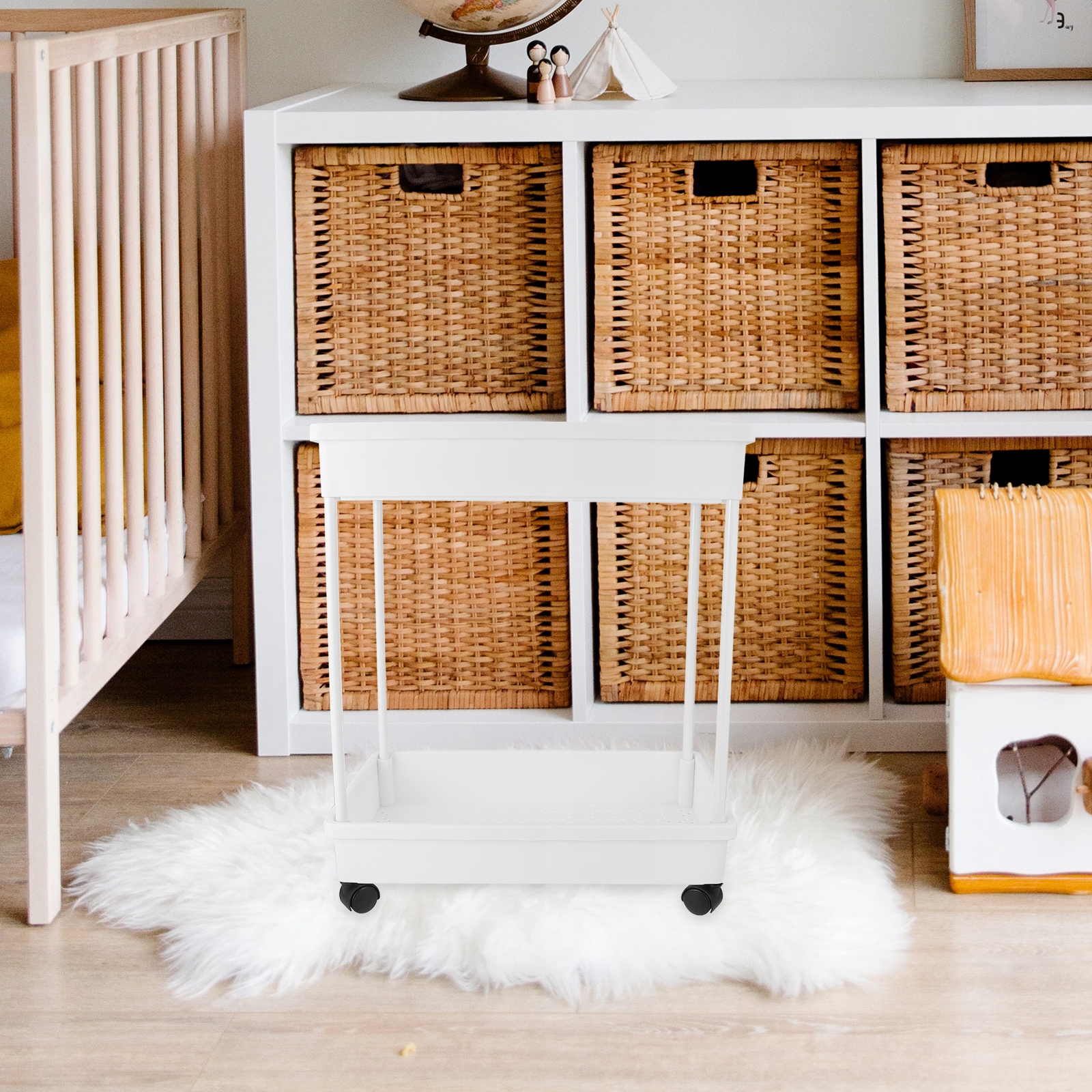 ✅Цей візок для зберігання на колесах стане вашим сімейним помічником у сховищах! Цей візок для інструментів на колесах має 2 рівні полиць для кошиків. Ви можете покласти туди що завгодно, наприклад туалетні приналежності, рушники, рослини, косметику, продукти, їжу, швейні приналежності тощо. Це економить місце на землі, щоб максимально використовувати простір.