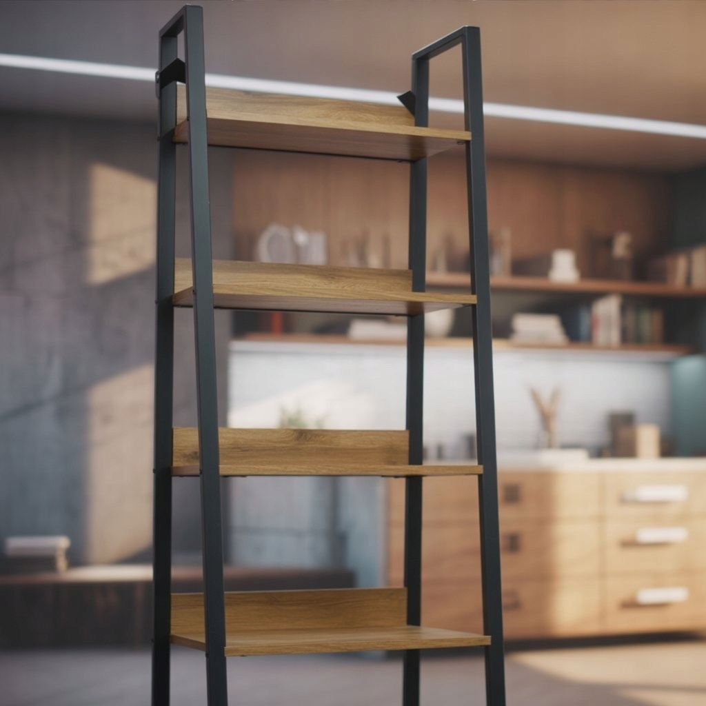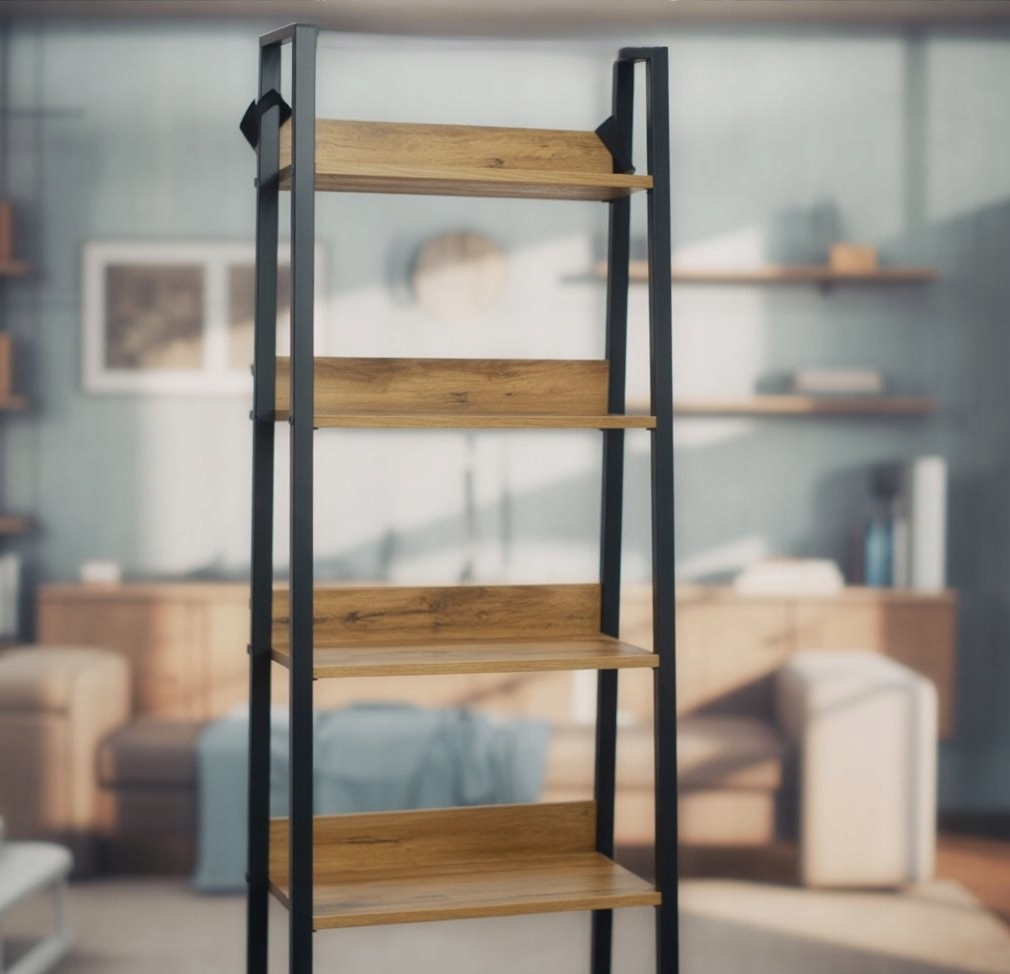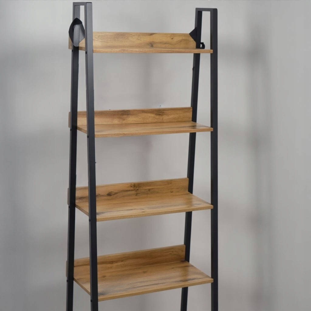 Додайте неповторну атмосферу своєму інтер'єру за допомогою дизайнерської полиці в LOFT / промисловому стилі. Ця модель «драбинка» являє собою поєднання міцної сталевої конструкції та елегантних полиць з натурального дуба. Ідеально підходить для вітальні, кабінету, спальні чи молодіжної кімнати.