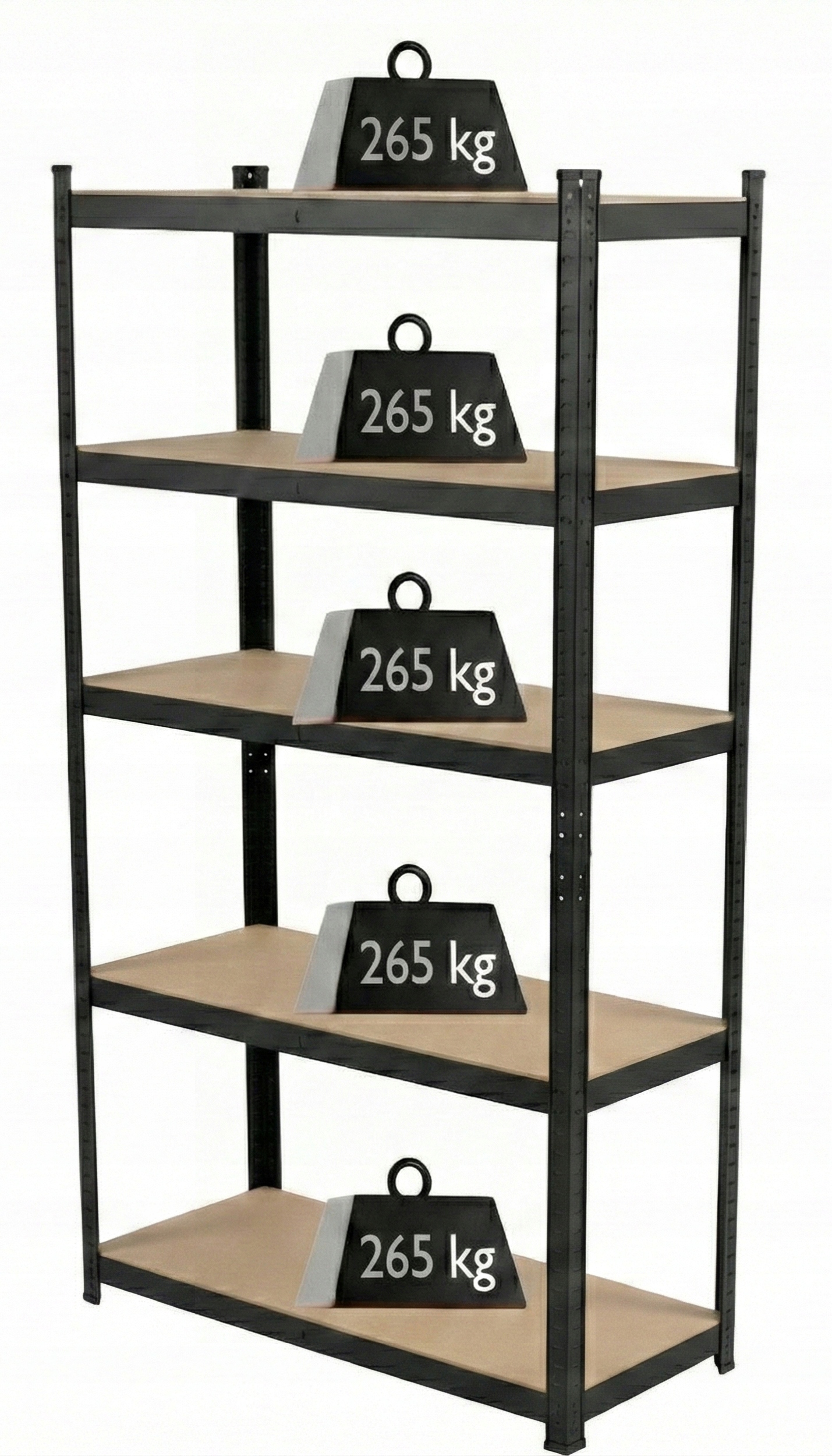 ✅ НАДЗВИЧАЙНА ВАНТАЖУЗДІЛЬНІСТЬ - Міцна конструкція дозволяє навантажувати до 265 кг на кожну полицю, що дає загальну вантажопідйомність до 1325 кг.