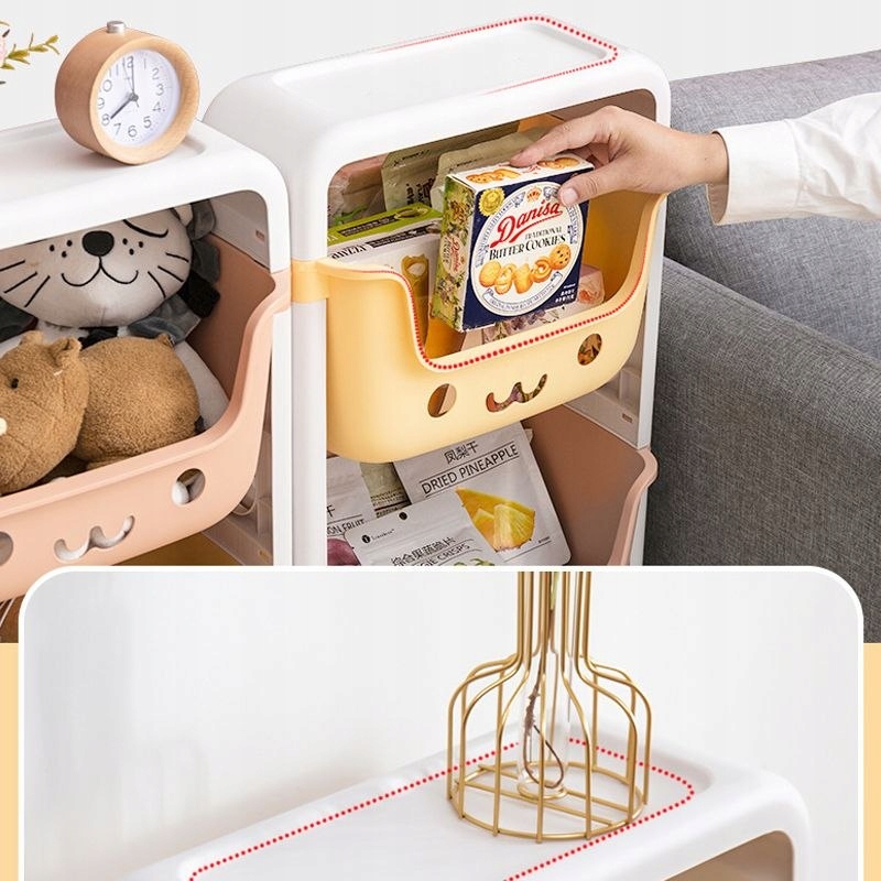 Полиця на коліщатках базується на твердій білій рамі з трьома барвистими ящиками. Виріб відмінно підійде в якості органайзера для іграшок і різноманітних аксесуарів в дитячій кімнаті. Купуючи нашу полицю, ви отримуєте додатковий простір для аксесуарів. Найбільшою перевагою нашої полиці є її розміри, які роблять її ідеальною для кімнат, де важливе використання кожного простору. Завдяки вбудованим колесам органайзер можна легко перемістити в потрібне місце. Глибокі полиці забезпечують велику ємність для зберігання. Дуже легко підтримувати в чистоті - просто протріть вологою ганчіркою.