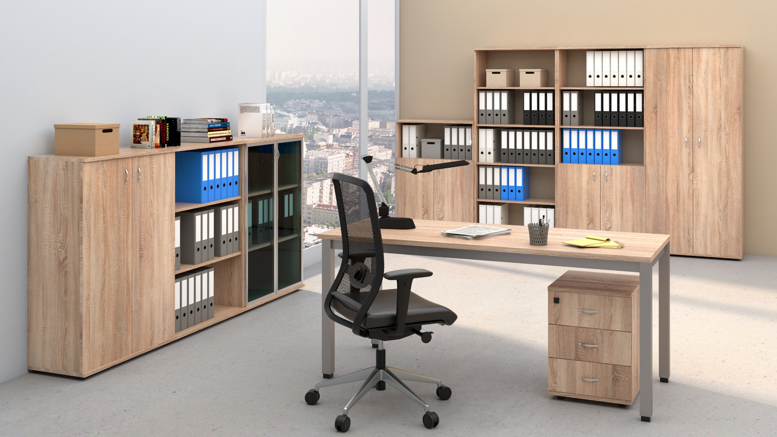 ОФІСНА ПОЛИЦЯ S4 З ДВЕРЦЯТАМИ – КРАФТОВИЙ ДУБ | СИСТЕМА ОФІСНИХ МЕБЛІВ