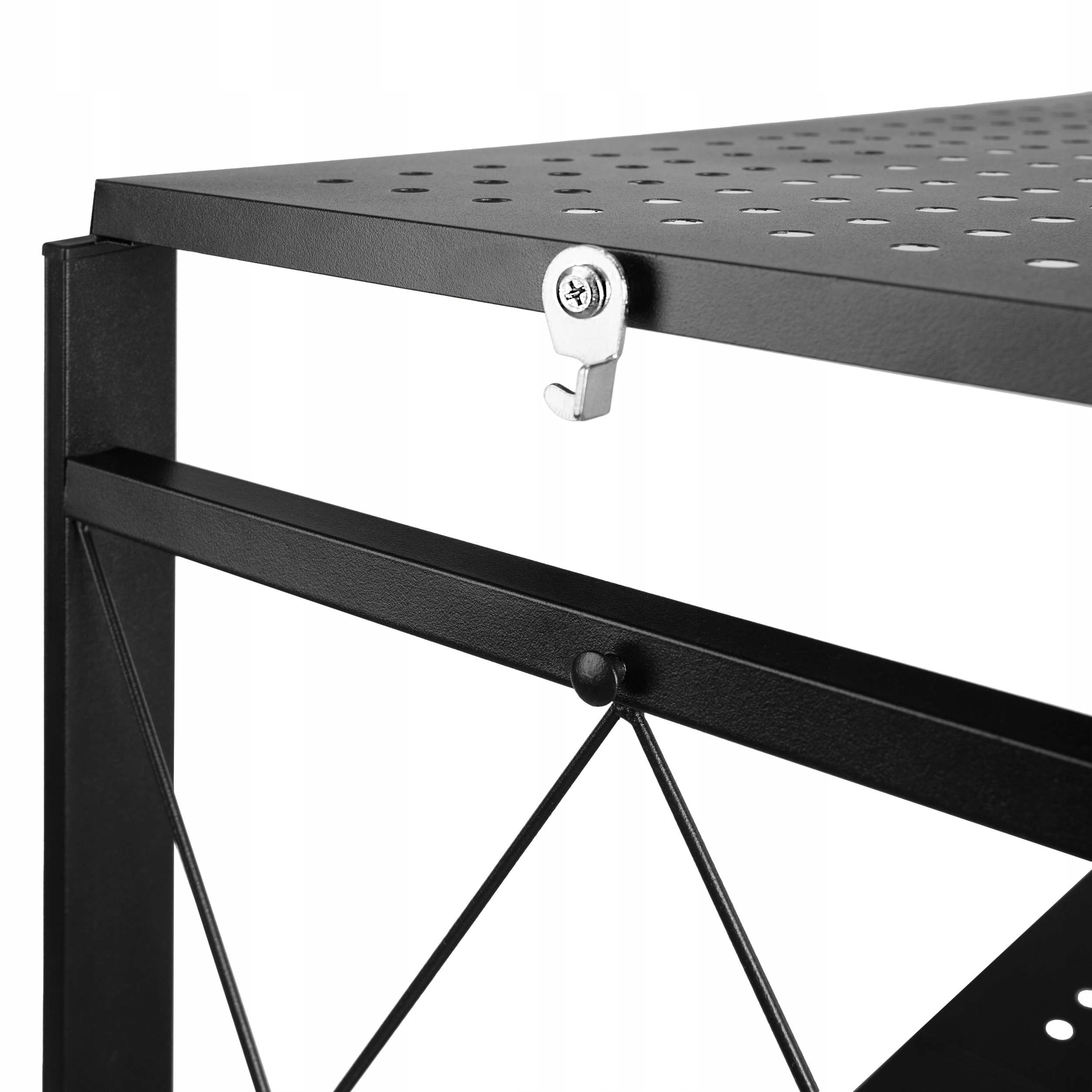 Складна полиця Gestel є ідеальним рішенням для тих, хто цінує функціональність і мобільність. Завдяки трьом містким полицям, міцній сталевій конструкції та мобільним колесам полиця ідеально підходить як для дому, так і для офісу. Легко зібрати, не потрібно збирання, що економить ваш час і місце. Його універсальний чорний колір впишеться в будь-який інтер'єр, а можливість швидкого складання робить зберігання ще простіше.