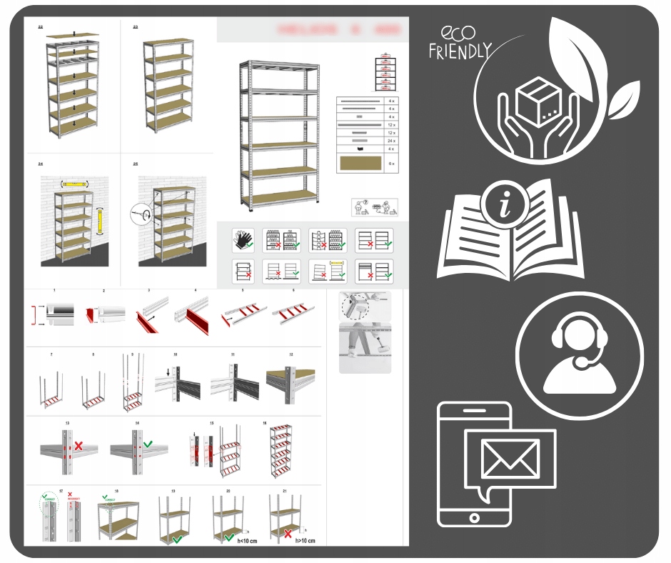 У упаковці ви знайдете інструкцію зі складання полиці. Якщо у Вас виникнуть додаткові запитання, наші співробітники завжди до ваших послуг на кожному етапі оформлення замовлення. Ми з радістю проведемо вас через весь етап замовлення товару. Ви будете отримувати інформацію протягом усього етапу замовлення та дізнаватися про шлях вашої посилки.
