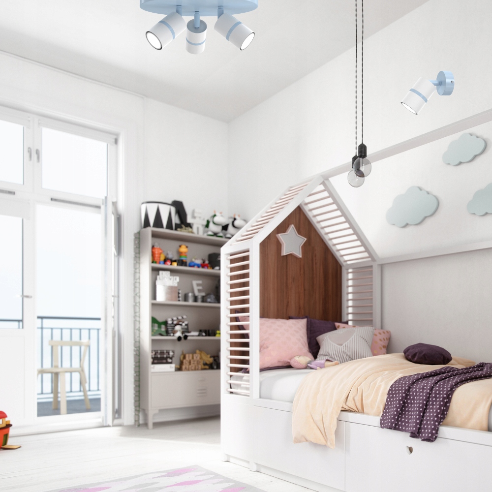Дитяча колекція JOCKEY чудово впишеться в інтер'єр дитячої та підліткової кімнати. Лампи представлені в декількох універсальних кольорах: пастельно-рожевий, блакитний, чорно-білий, тому кожен підбере щось для себе. Колекція включає настінні світильники у вигляді регульованих невеликих спотів і відбивачів, встановлених на металевих круглих основах. Такий широкий вибір означає, що інтер’єр можна оснастити різними елементами колекції, створюючи єдине ціле. Точкові світильники регулюються, тож ви можете спрямувати їх на простір, який хочете спеціально освітлити, наприклад, на дитячий стіл.