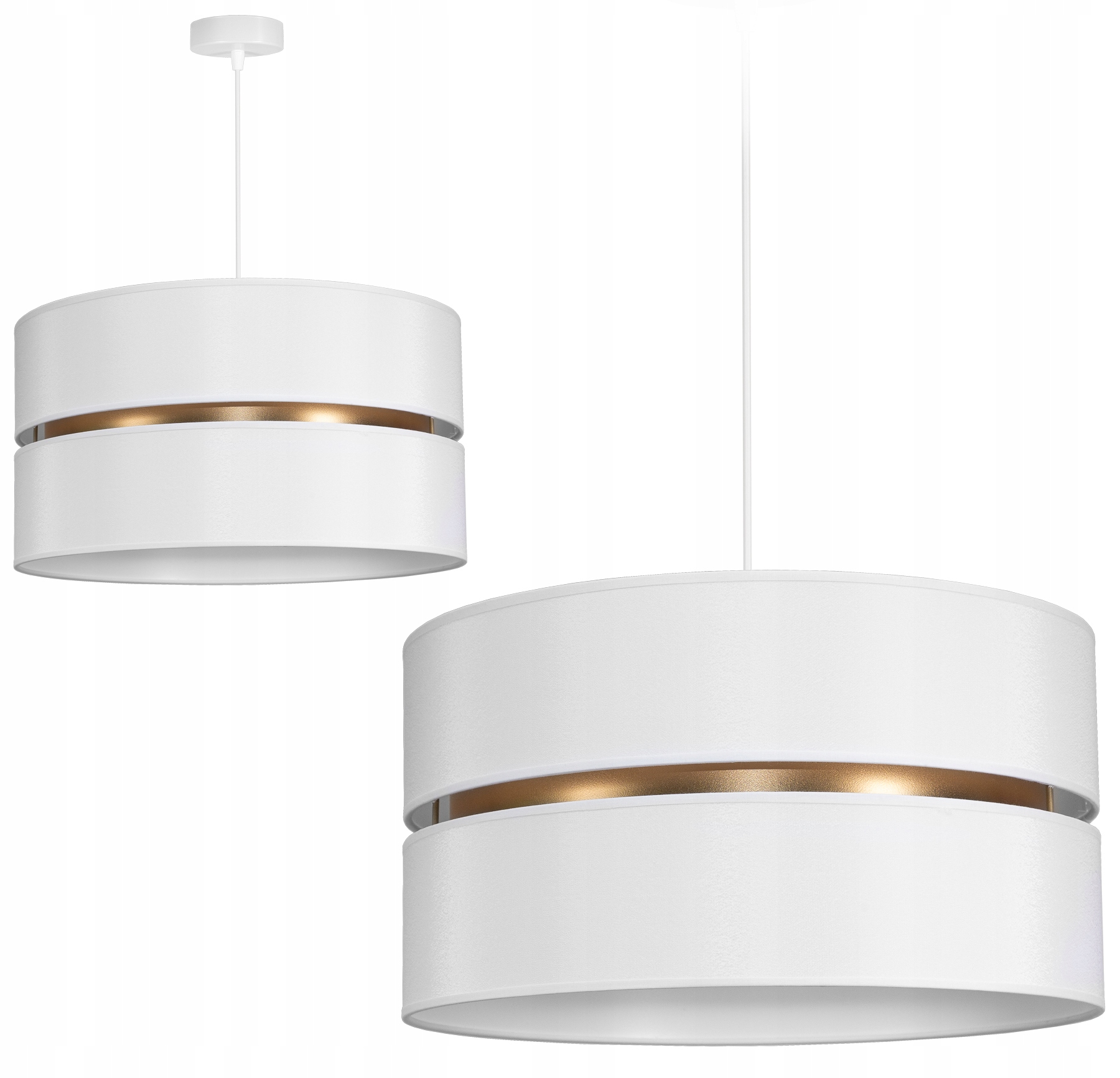 Сучасний стельовий світильник - люстра з білим абажуром із зовнішнім золотим акцентом і сріблястим внутрішнім покриттям для кращого розсіювання світла. Високоякісні тканини та дизайнерський стиль ідеально впишуться у ваш інтер'єр та створять теплу сучасну атмосферу.