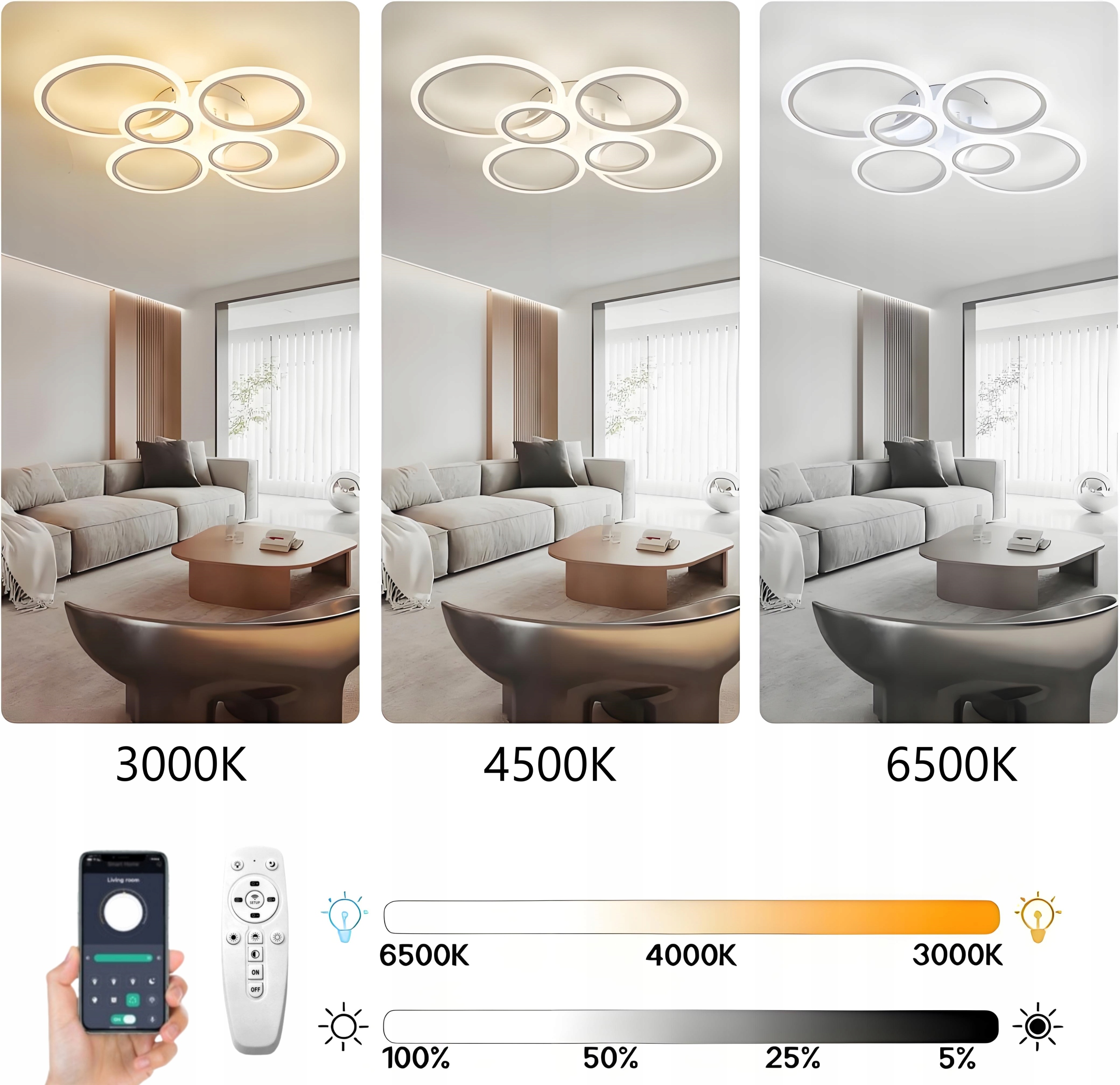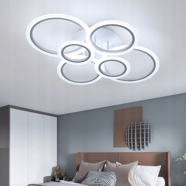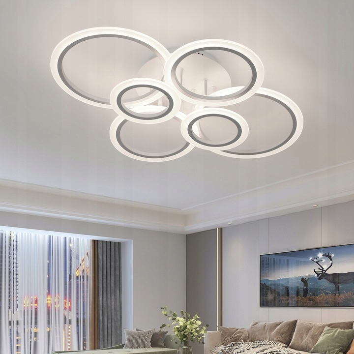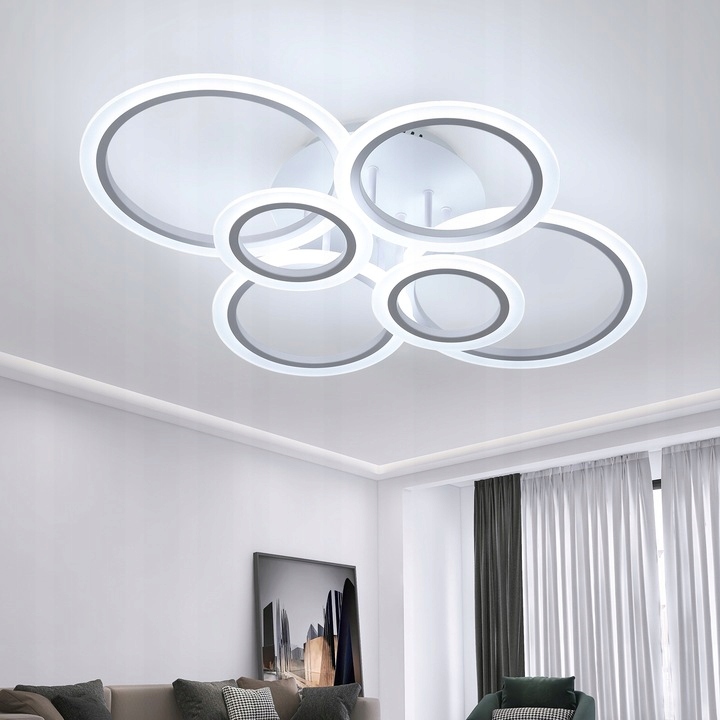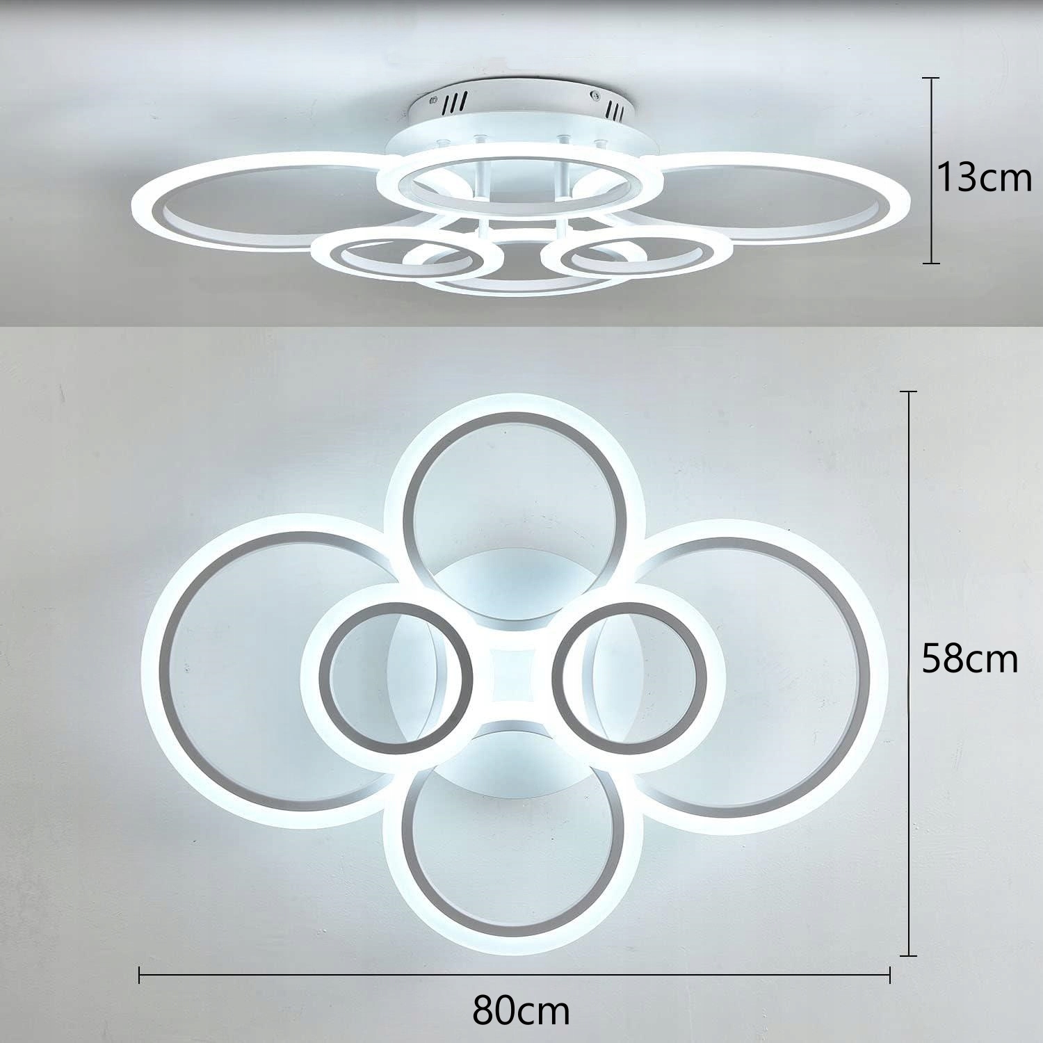 6-кільцевий геометричний дизайн світлодіодного стельового світильника привносить нотку моди у ваш дім. Білий акриловий абажур робить світло м'якшим. Цей стельовий світильник можна використовувати в спальні, вітальні, кухні, холі, кабінеті тощо.