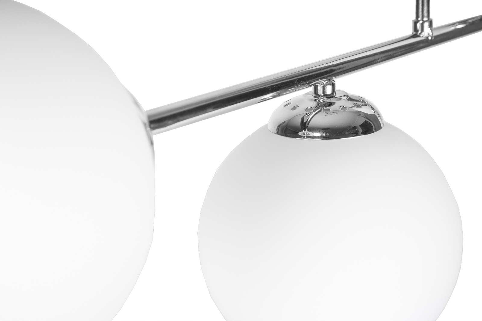 Сучасний стельовий світильник - хромована люстра з білими плафонами. Дизайнерський стиль, який ідеально впишеться у ваш інтер'єр.