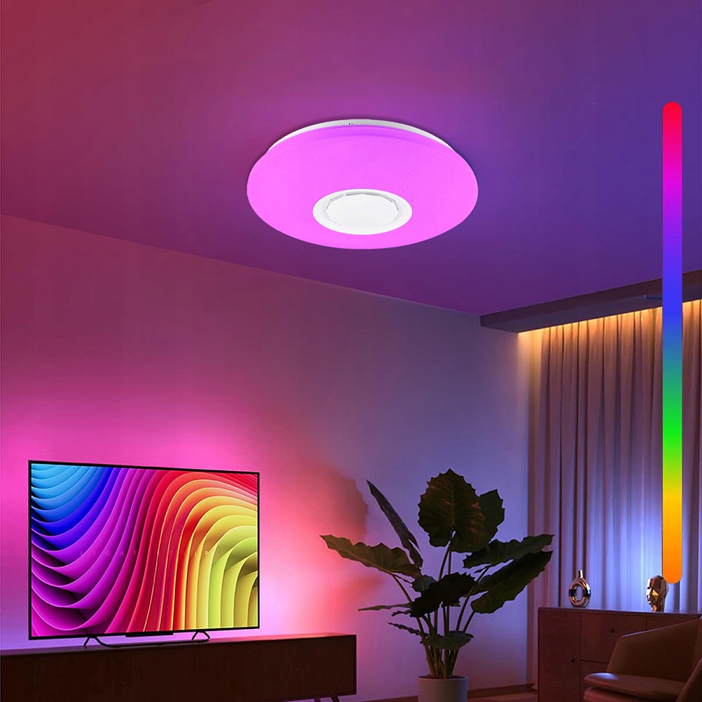 Стельовий світильник чудово виглядає у вітальні, він також може бути чудовим подарунком для дітей і подарувати їм масу задоволення від гри з освітленням і музикою. З досвіду клієнтів ми знаємо, що стельовий світильник чудово працює в ресторанах, готелях, канцелярських магазинах та багатьох інших громадських місцях, де він привертає увагу або створює приємну атмосферу під час вашого перебування.